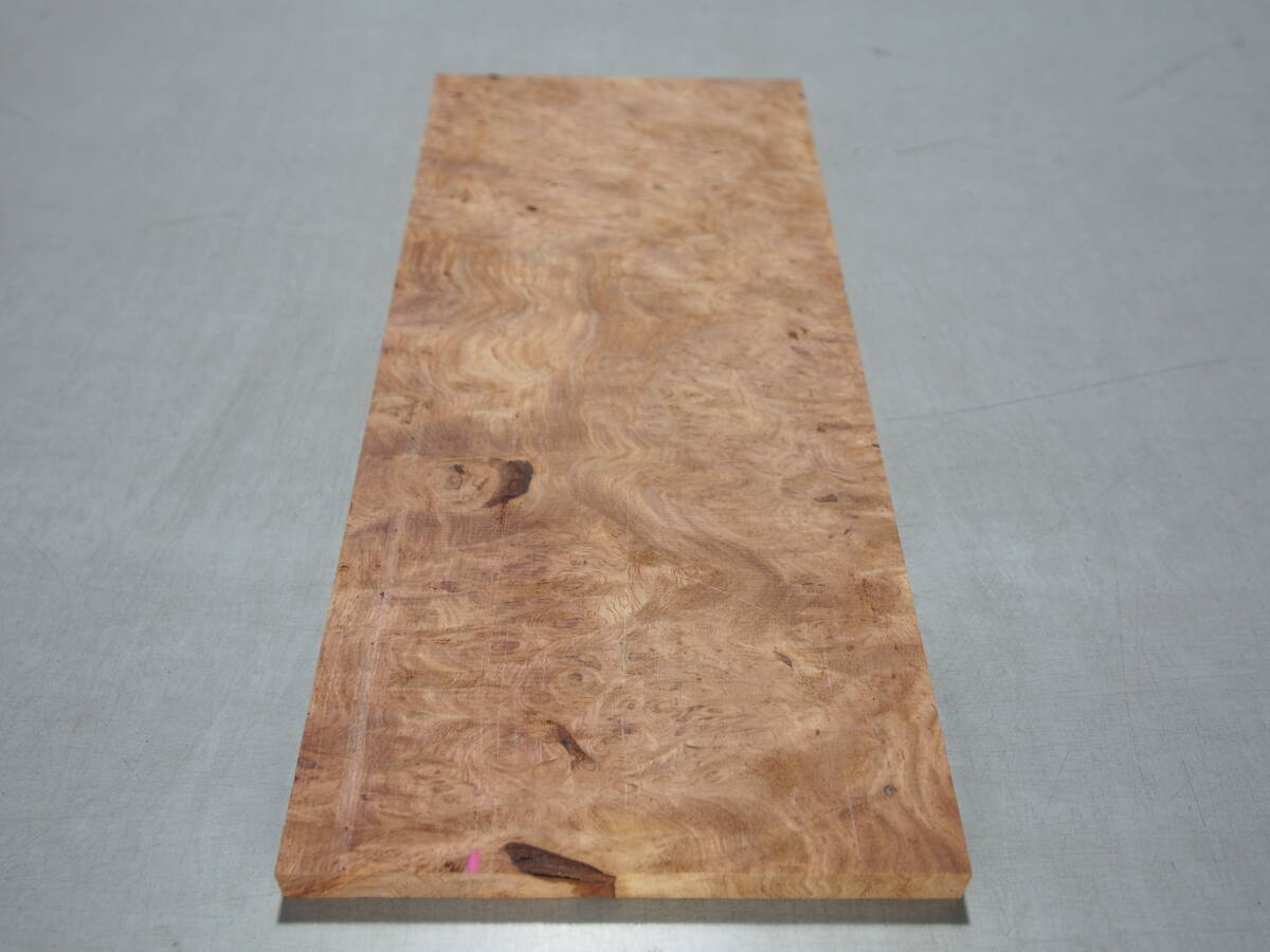 かりんの薄板、表と木口斜めからと、裏面と反対木口斜めからの写真です。