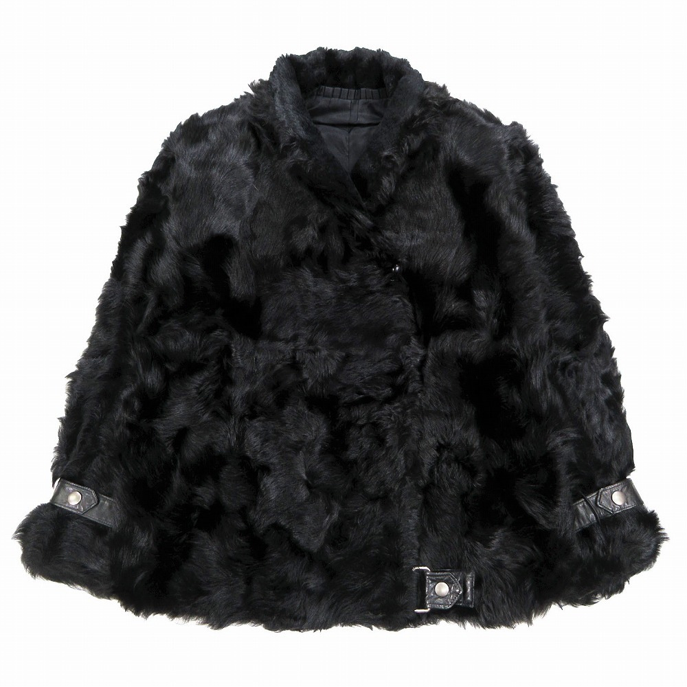 【ラムファー リアルファー 本毛皮 ライダースジャケット ショート丈 アウター ブラック レディース】 | |