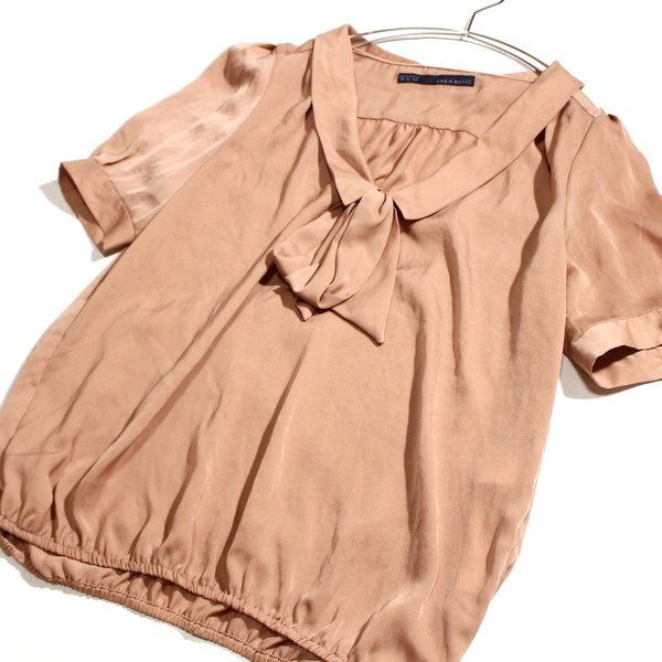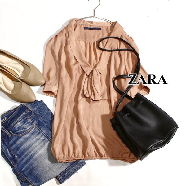 美品 ザラ ベーシック ZARA BASIC 綺麗め ボウタイ とろみ カットソー XS 春 夏 25B05