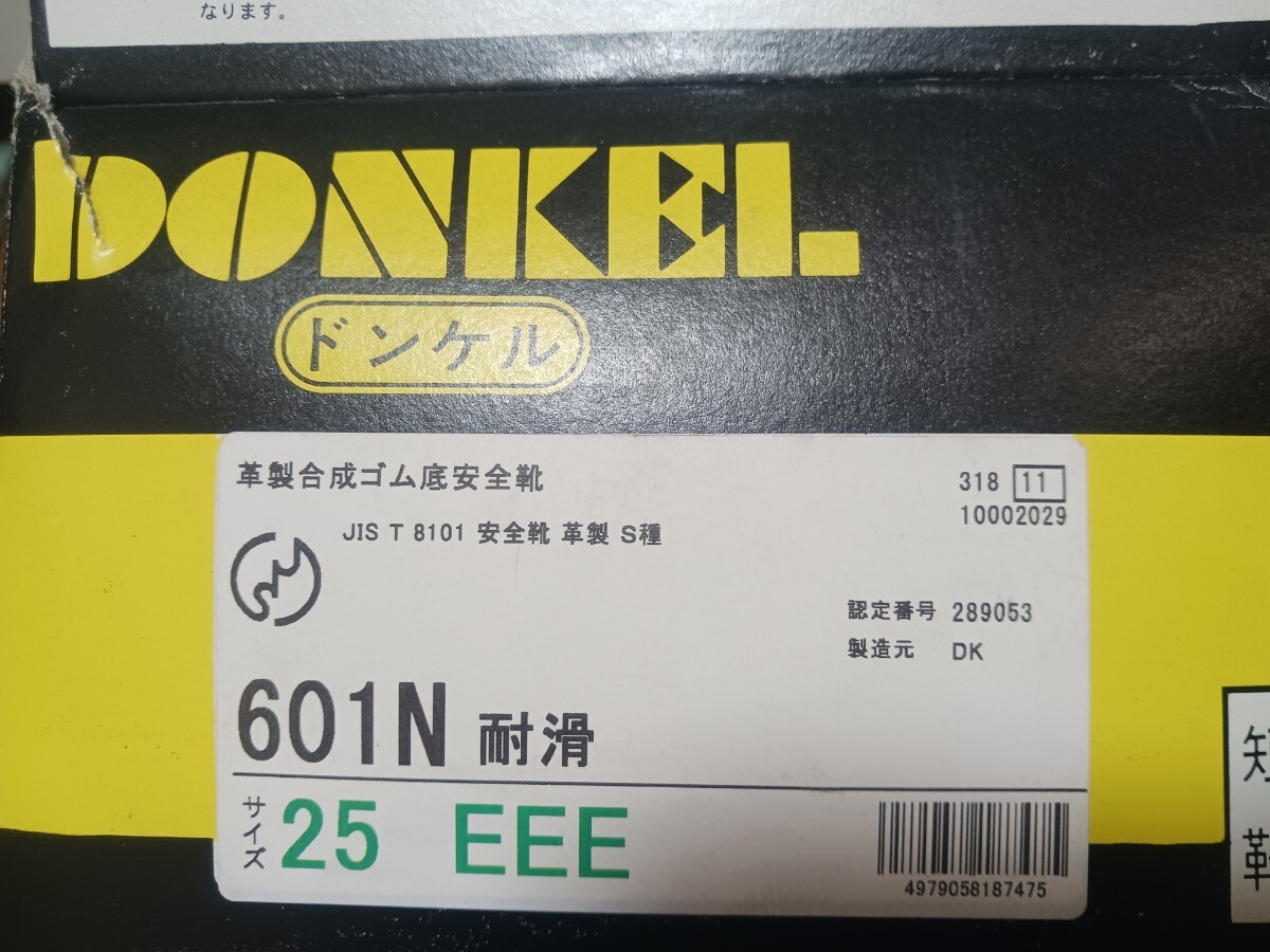 3968 DONKEL|鋼鉄先芯安全靴|601N|黒|25㎝EEE|ドンケル|新品未使用|革製S種|耐滑|革製合成ゴム底|短靴|作業靴|ローカット|3E