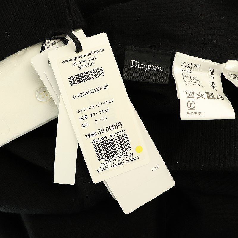 ダイアグラム グレースコンチネンタル 23AW シャツレイヤードニットワンピース 36 ブラック ホワイト /ES ■OS レディース