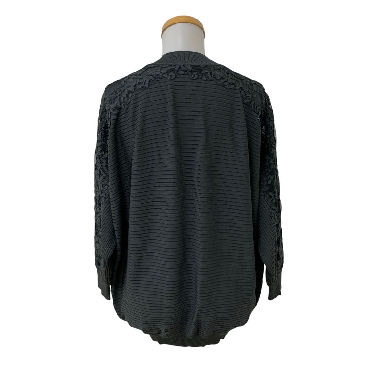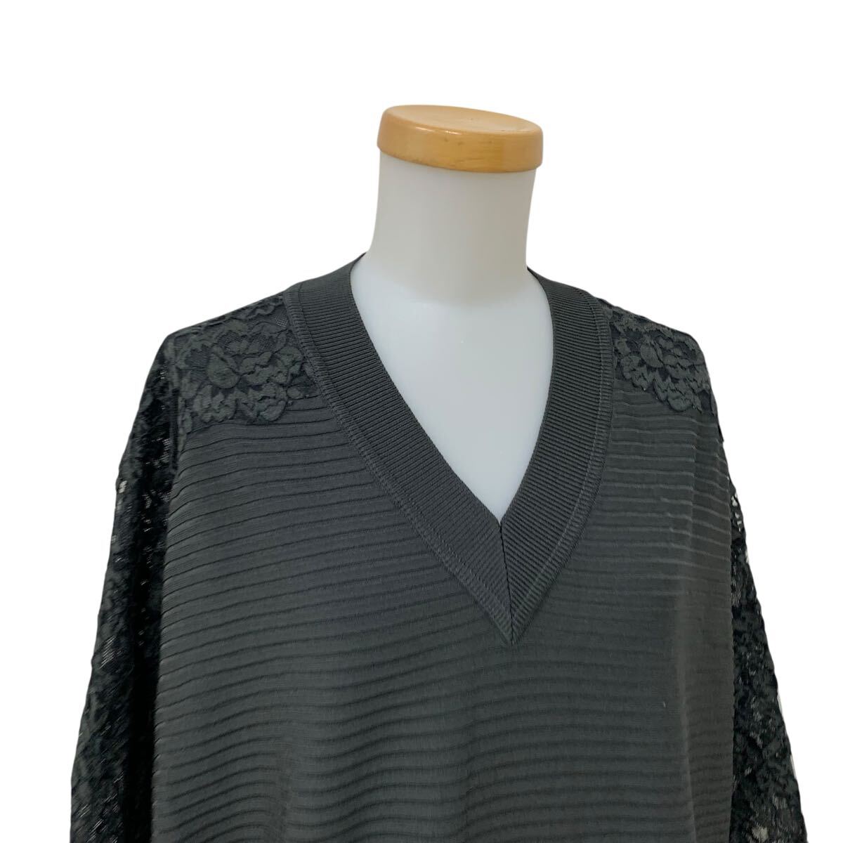 NB301-49 EPOCA エポカ ニット セーター プルオーバー レース デザイン Vネック トップス 長袖 グレー レディース 40 日本製