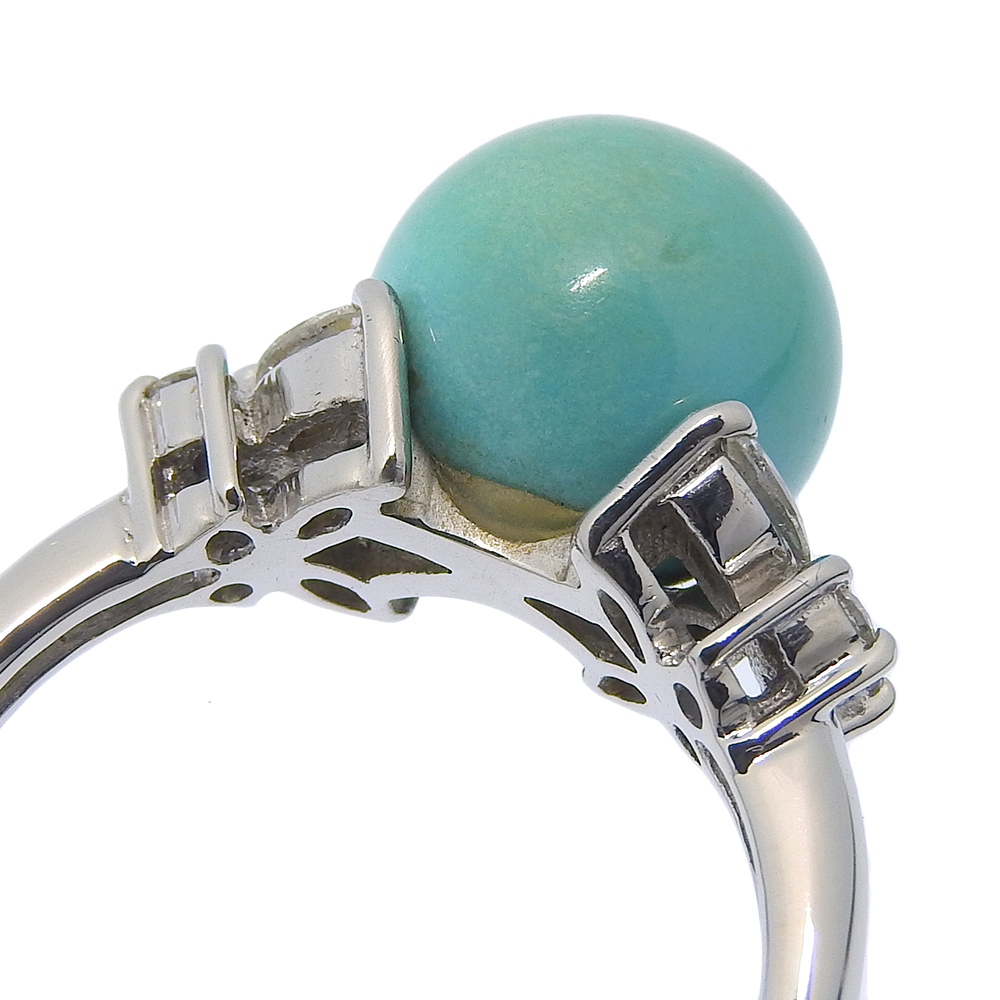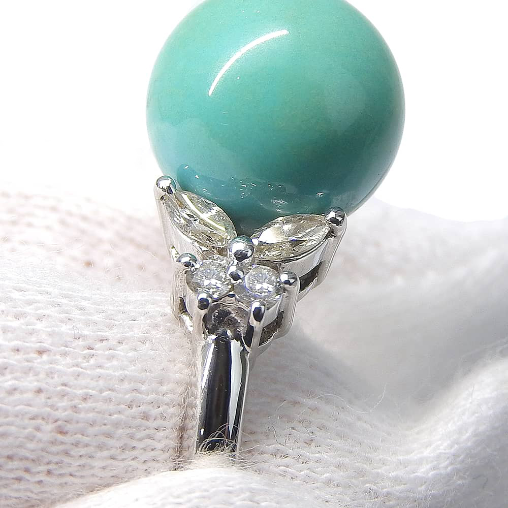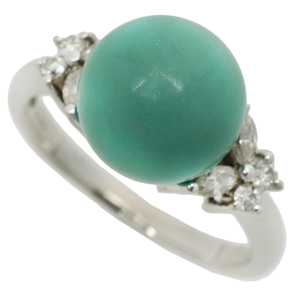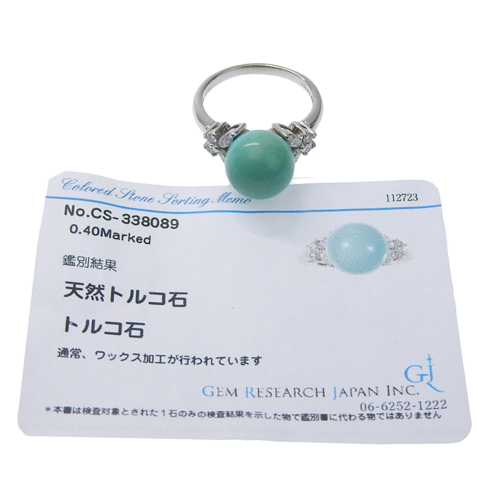 素材 | Pt900 石:天然トルコ石約11.1ミリ メレダイヤモンド0.40ct |
