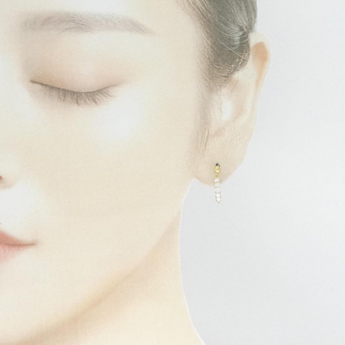 照りのあるダイヤモンドをあしらったピアス。耳元を明るく惹き立てます。
