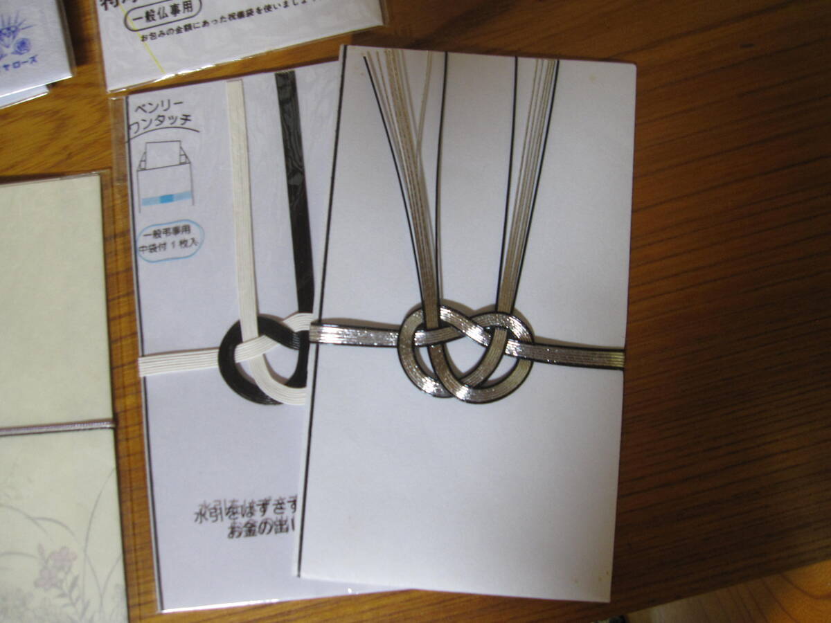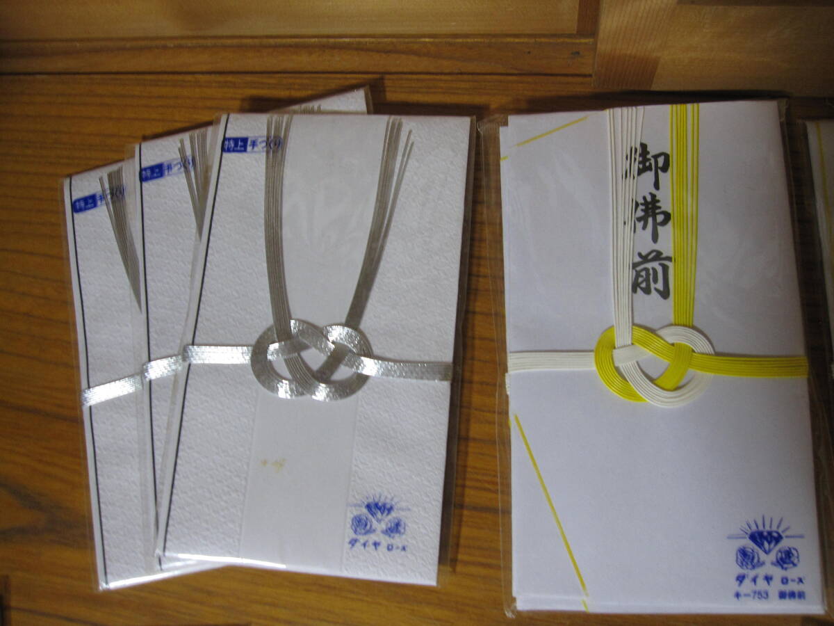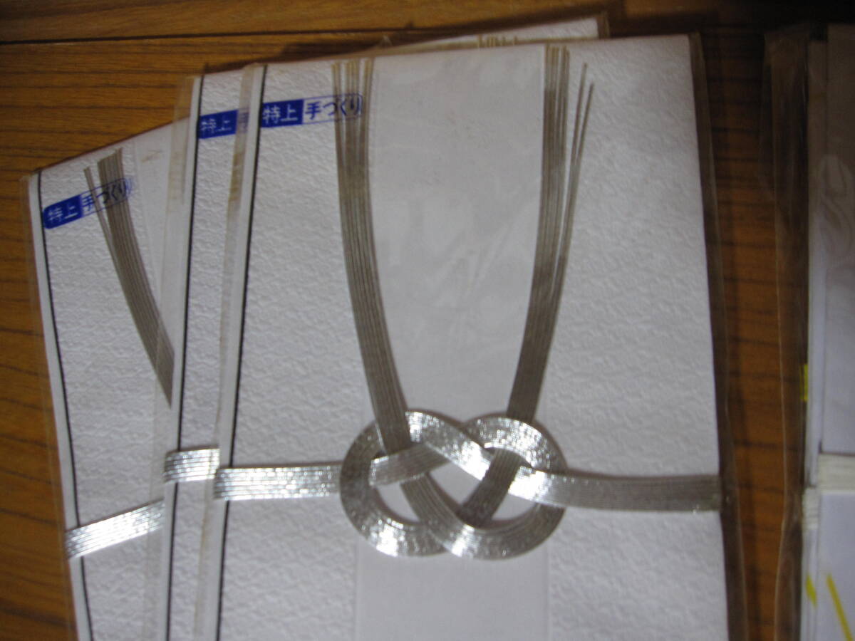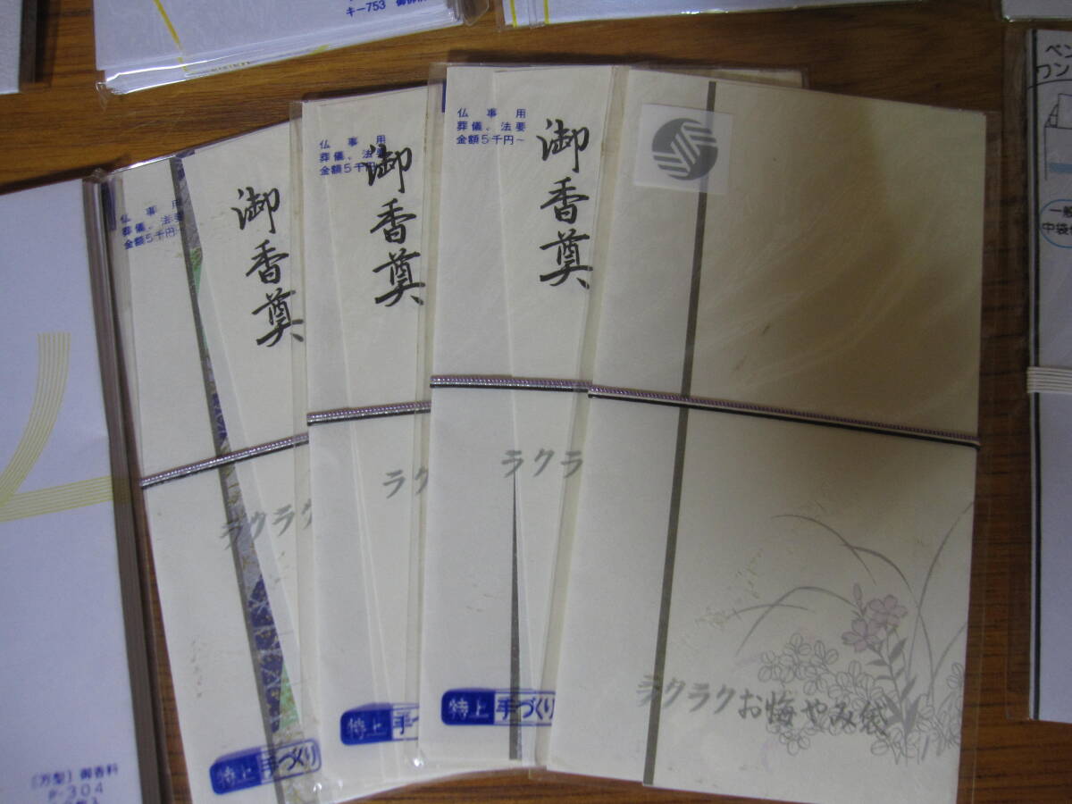 8)封筒: 銀黒 一文字 御香典 特上手作り 4枚。