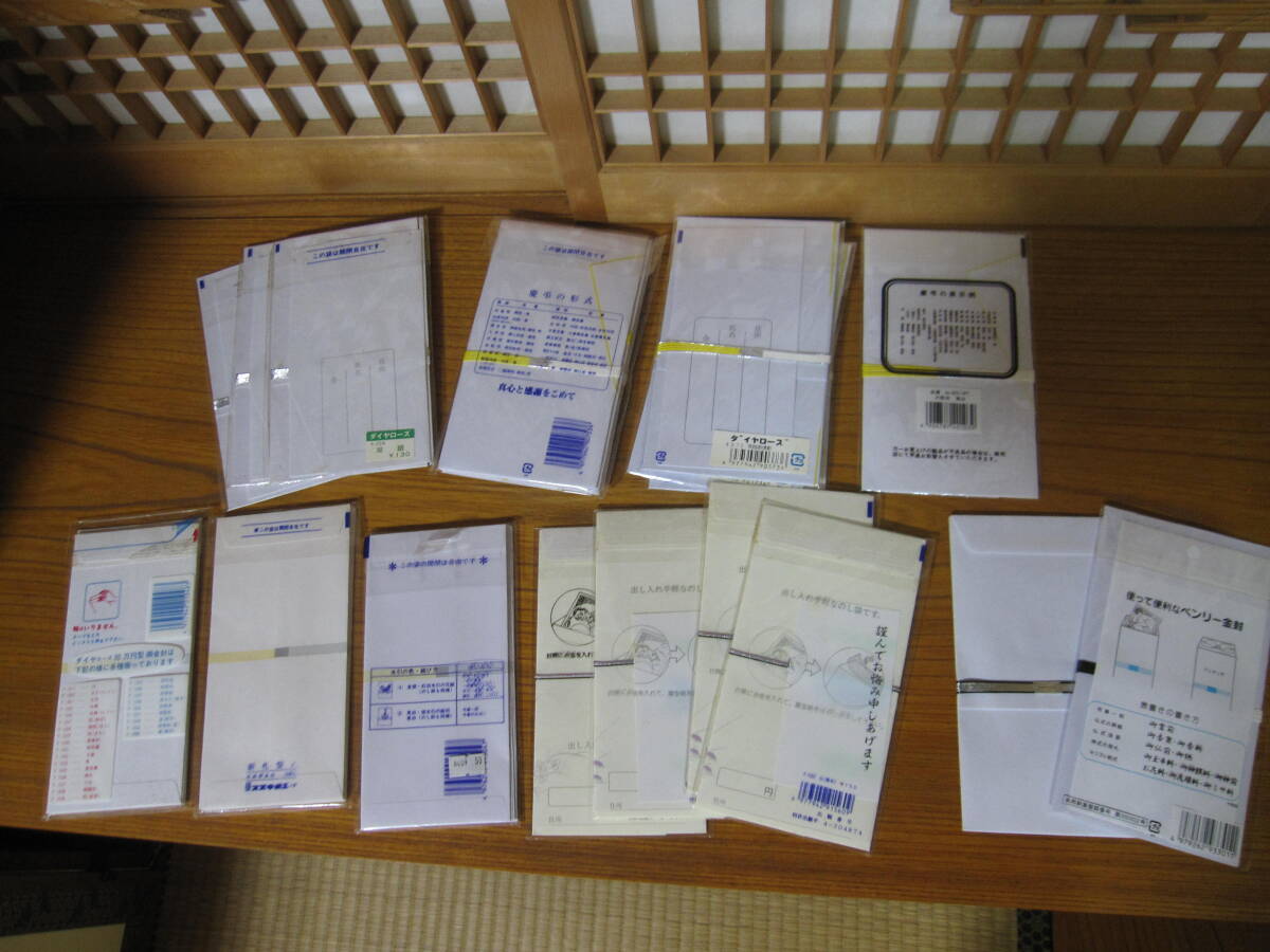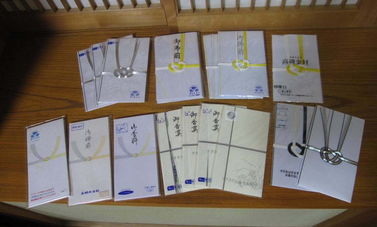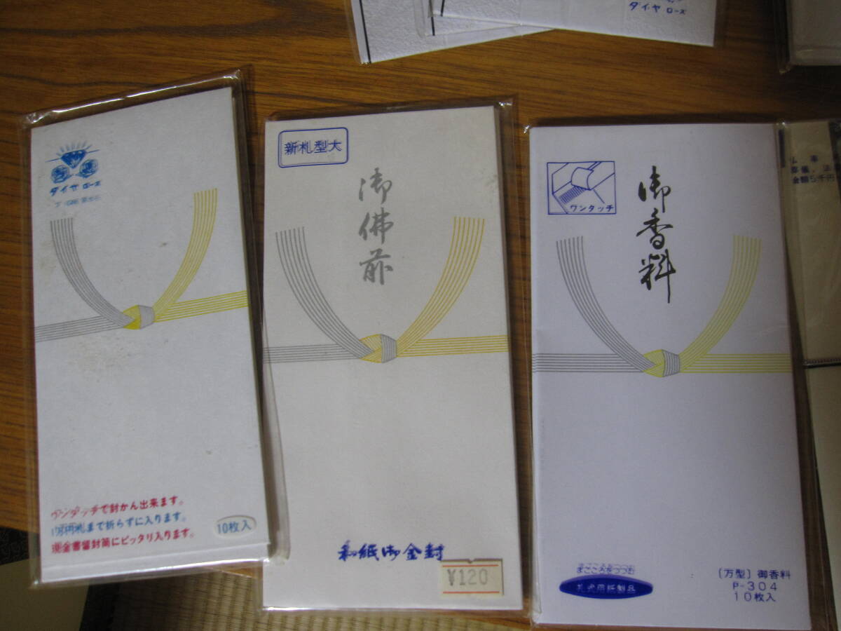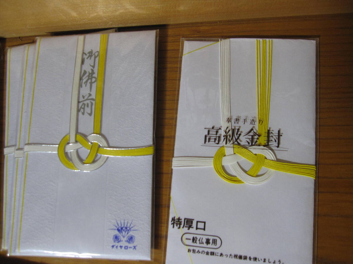 8)封筒: 銀黒 一文字 御香典 特上手作り 4枚。