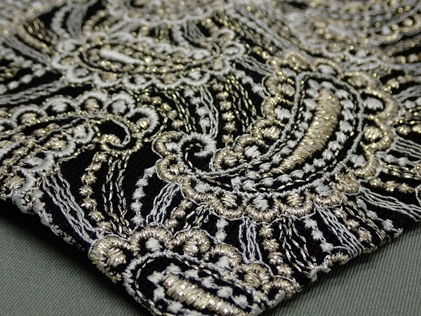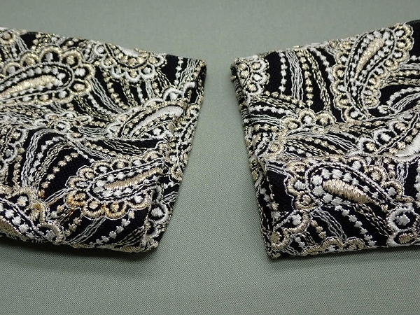| 色 黒×白×ゴールド 素材 表地 ナイロン100% 刺繍糸 レーヨン85% ポリエステル15% 裏地 ポリエステル | |