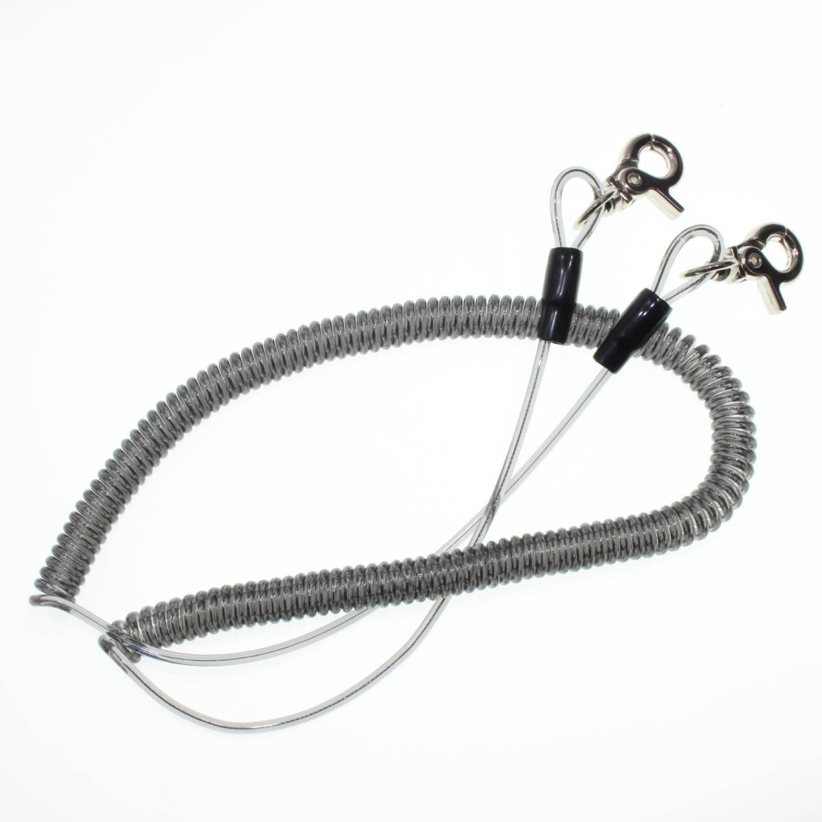 【送料無料】ワイヤー芯入りカールコード 尻手ロープ スパイラルコード 最大伸長3m×2本セット 釣り道具や工具等の落下防止に!