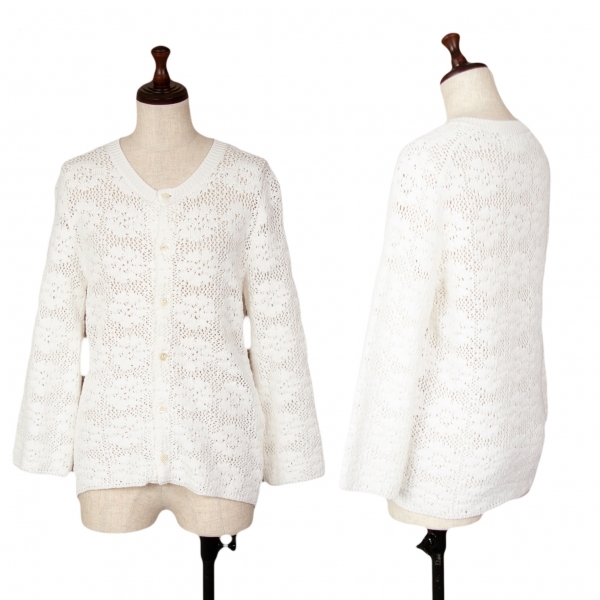 コムコム コムデギャルソンCOMME des GARCONS レース編みニットカーディガン 白XS |