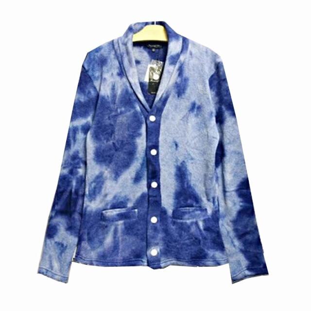 1円スタート メンズ インディゴムラ染ニットショールカラーカーディガン メンズ 3202-51 新品 ネイビー M