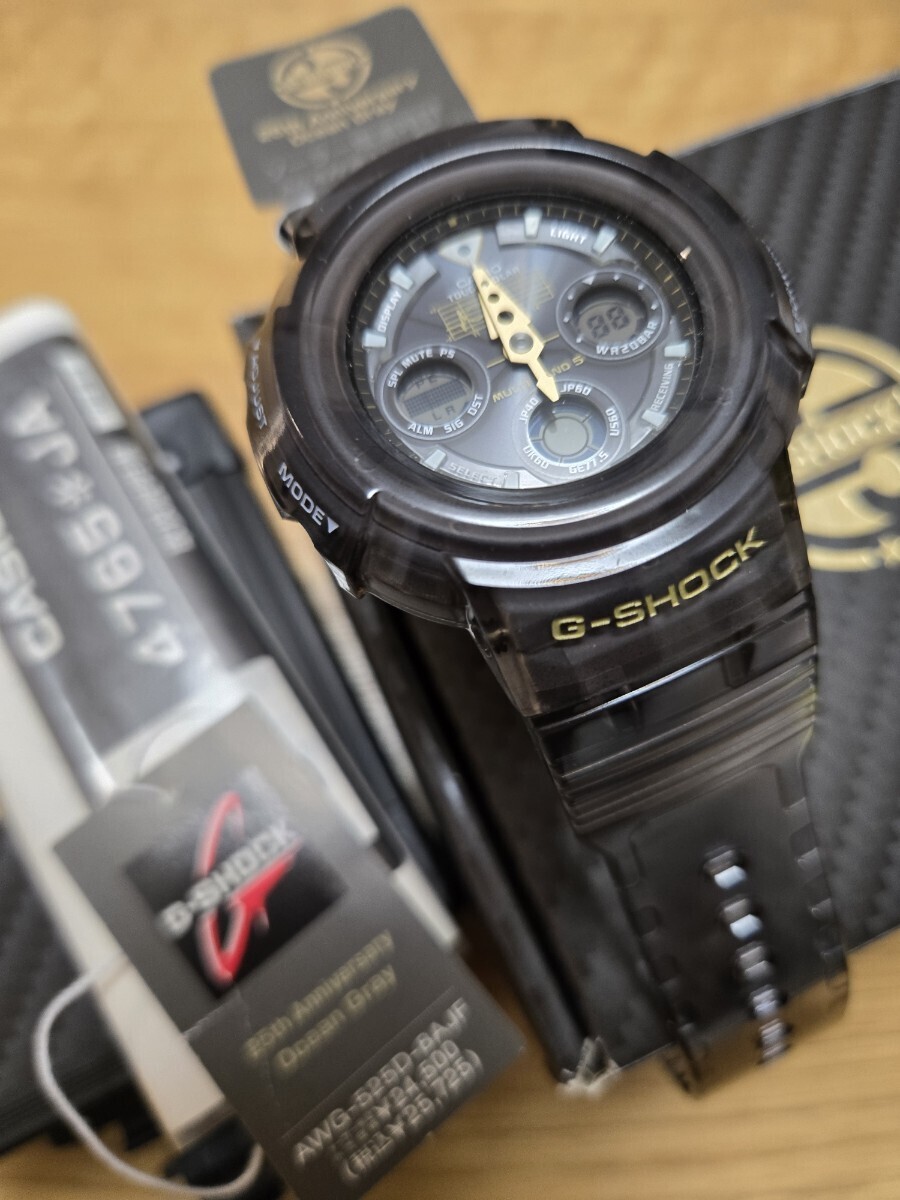即決! 希少! ラスト1本!CASIO Gショック 25周年記念モデル AWG-525D-8AJF 新品 未使用品 完品 タグ付 オーシヤグレー