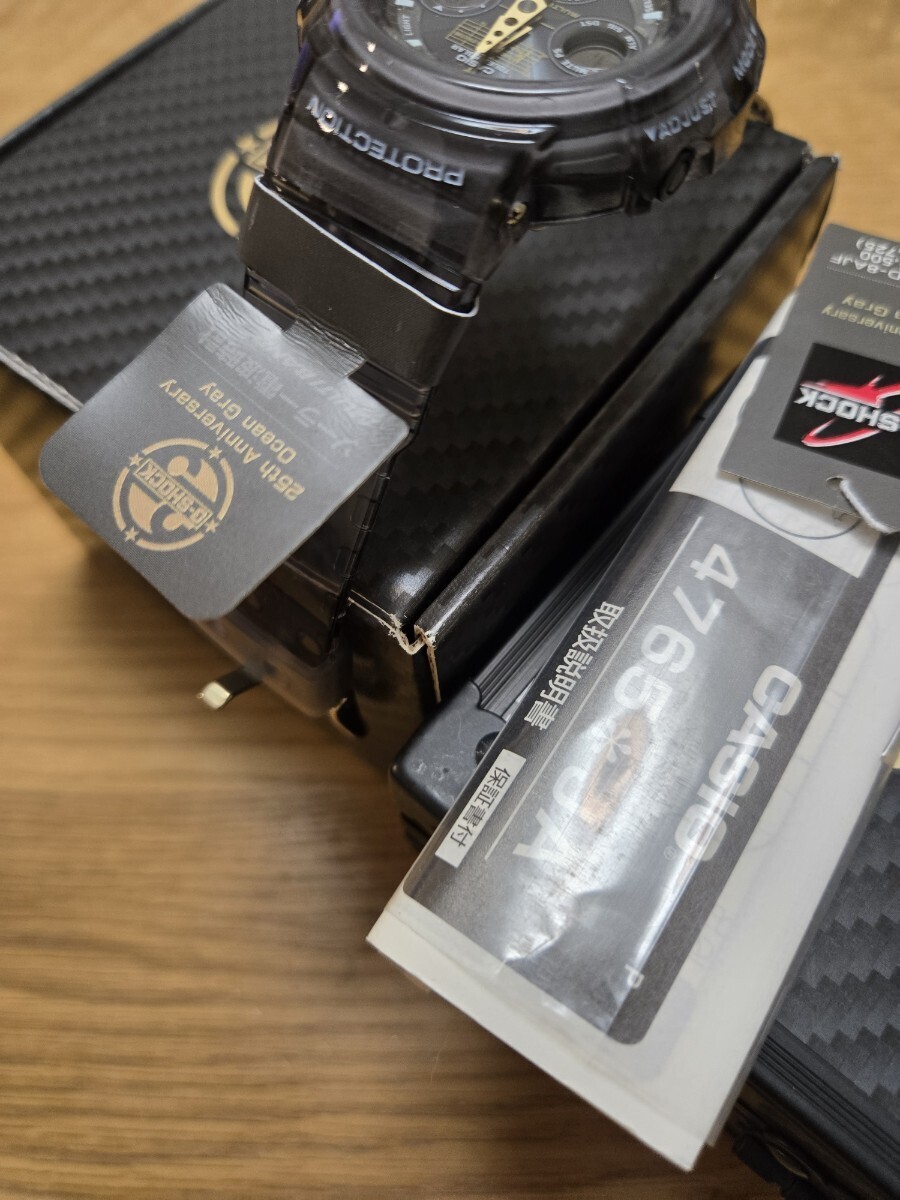 ラスト1本! CASIO Gショック 希少モデル! ラスト1本! AWG-525D-8AJF オーシヤグレーアナログモデル 付属品 CASIO25周年箱、取説、プライスタグ、ヘッドタグ付 新品、未使用、完品 ガラス傷無し、裏ブタ傷無し