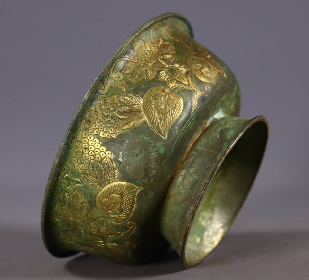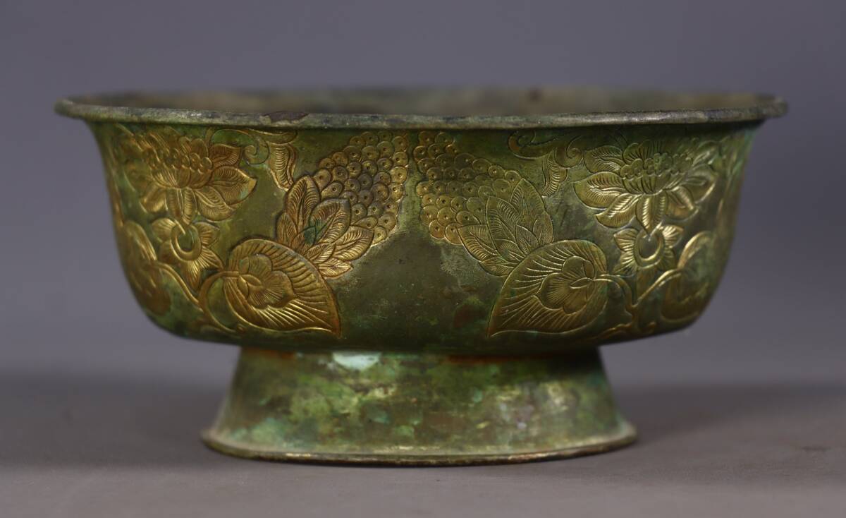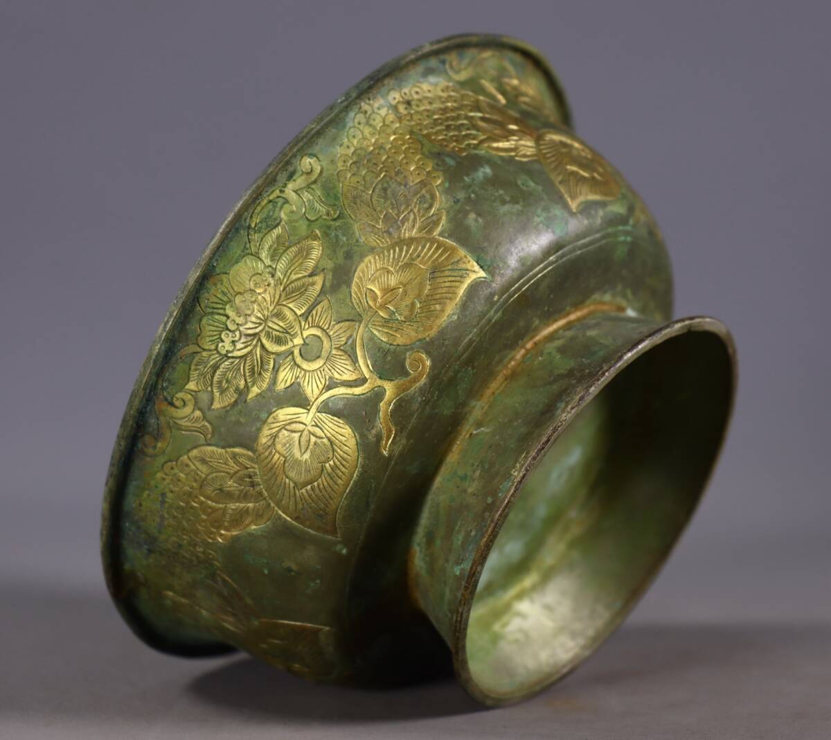 *珍品旧蔵* 清 局部塗金 手工鏨刻 碗 銅製 極細工 唐物 中国古玩 骨董品 古美味 H45