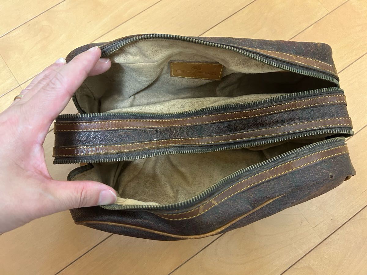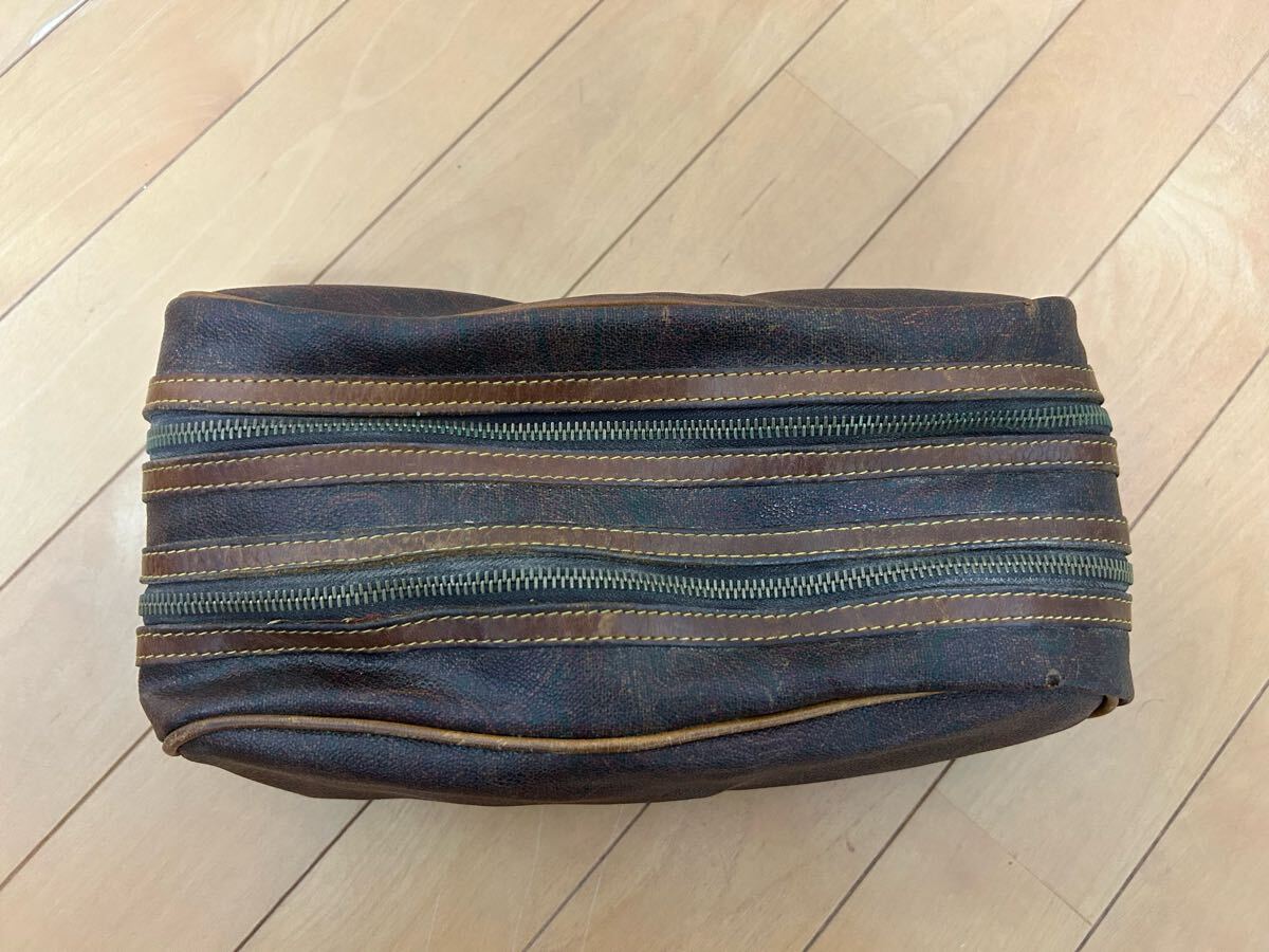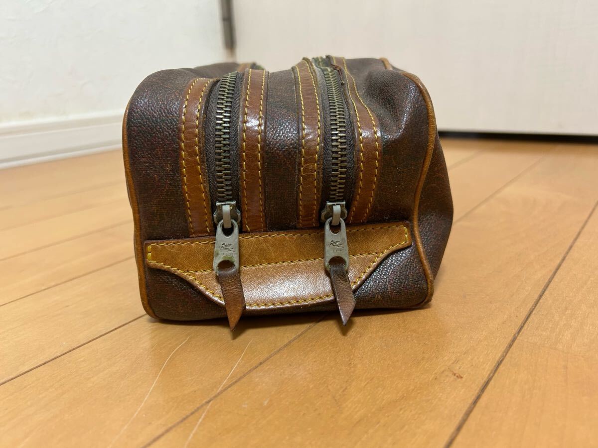 写真8枚目のバッグ内側の生地が経年劣化により「粉が吹く」状態です。