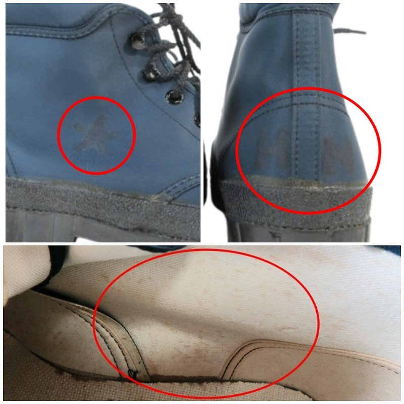 【状態】靴の内側にシミがあります。 アウトソールに土汚れがあります。 両足の外側と踵部分に汚れがあります。