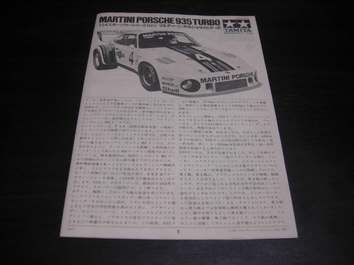 タミヤ 1/24 スポーツカーシリーズNO、1 マルティーニ・ポルシェ935ターボ (ジャンク品)
