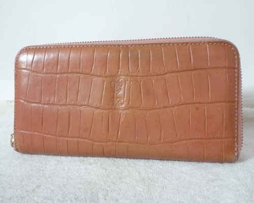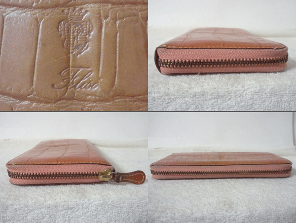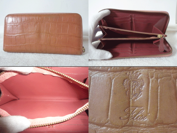 | フェリージ Felisi レザー ピンクベージュ系 クロコ型押し 長財布 ラウンドファスナー ロングウォレット レディース | ||
