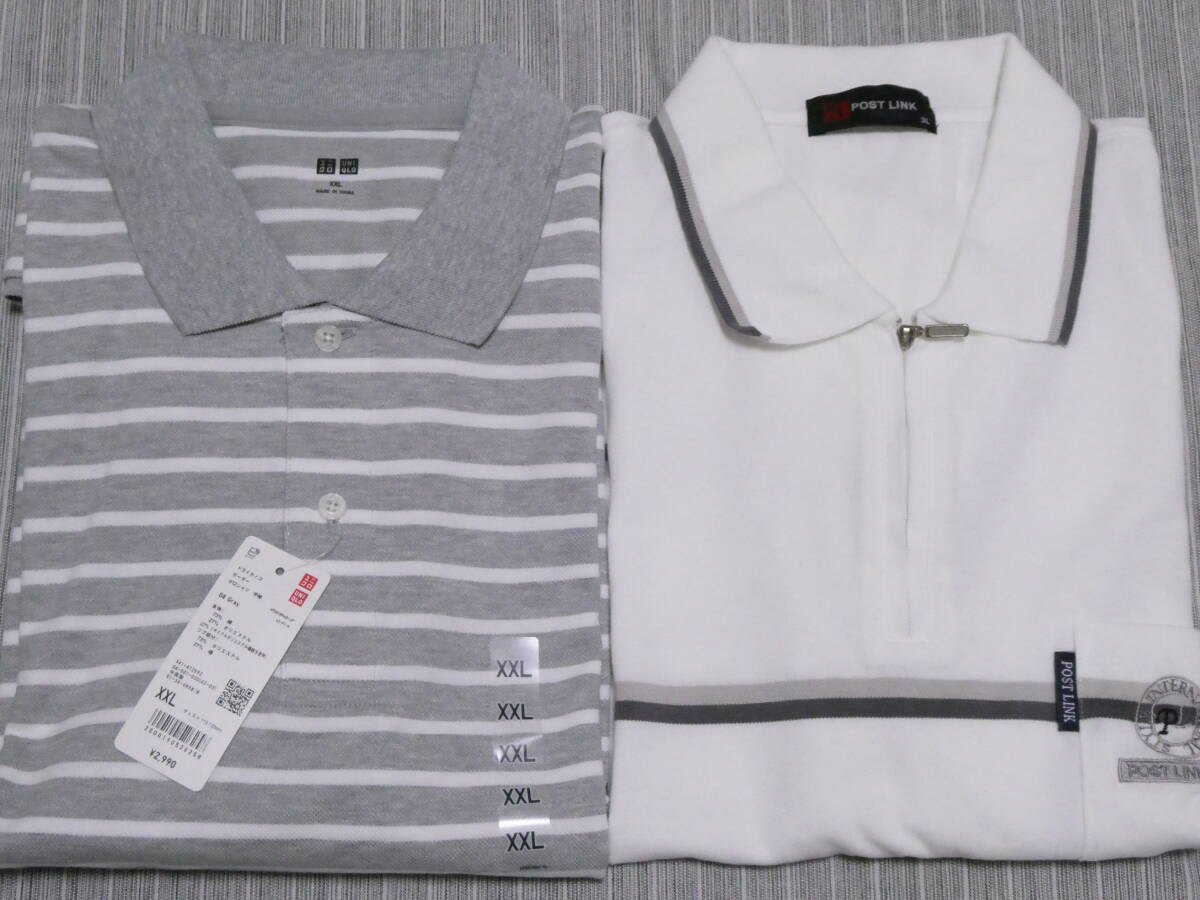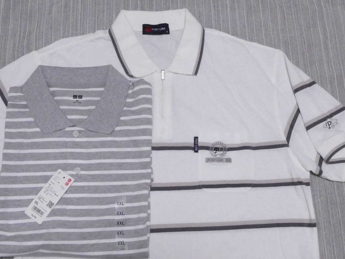 値下!!2枚まとめて ユニクロ&POST LINK 半袖ポロシャツ 3L グレー系ボーダー柄 ビッグサイズ 大きいサイズ 未着用