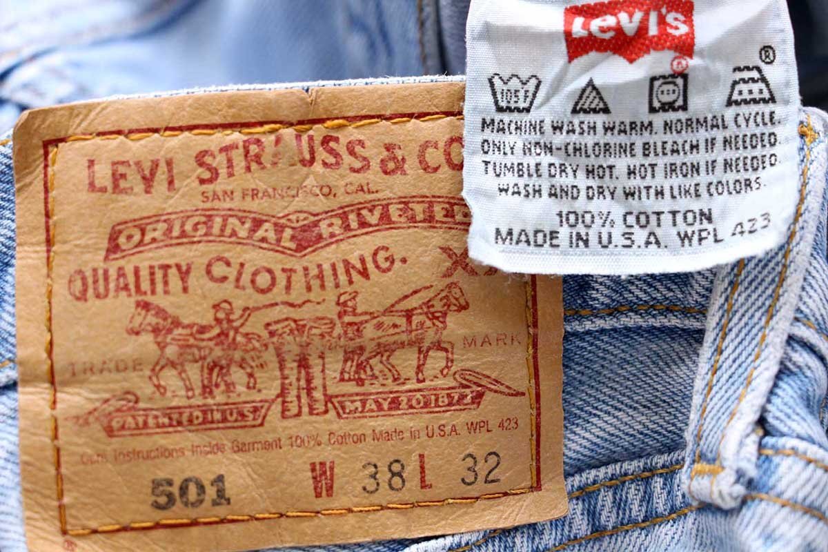 ★90s USA製 Levi'sリーバイス 501 デニムパンツ w38 L32★157 オールド ビンテージ ジーンズ ストレート アイスブルー ビッグサイズ