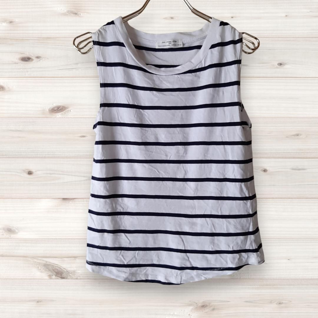 A0721 ザラ ZARA タンクトップ Tシャツ (S) ボーダー 総柄