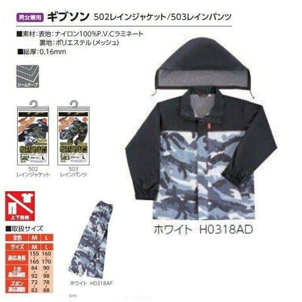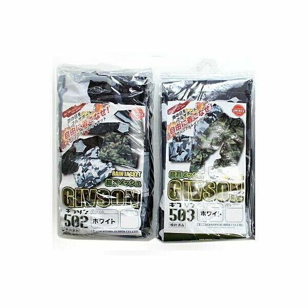 【M 155-165cm】 レインスーツ 上下セット 弘進ゴム ギブソン 502+503 ホワイト カモフラ 迷彩 雨具 [ksg1270A01] 新品未使用