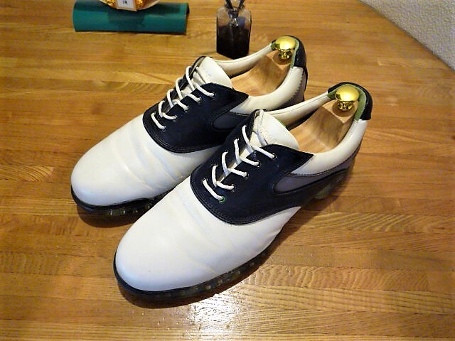 ジャンク品 BOSSスパイクゴルフシューズ 27㎝ ホワイトx濃いネイビー