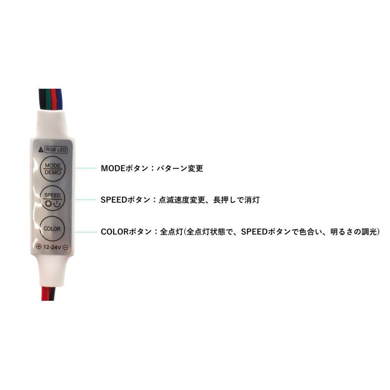 COLORボタン:全点灯(全点灯状態で、SPEEDボタンで色合い、明るさの調光)