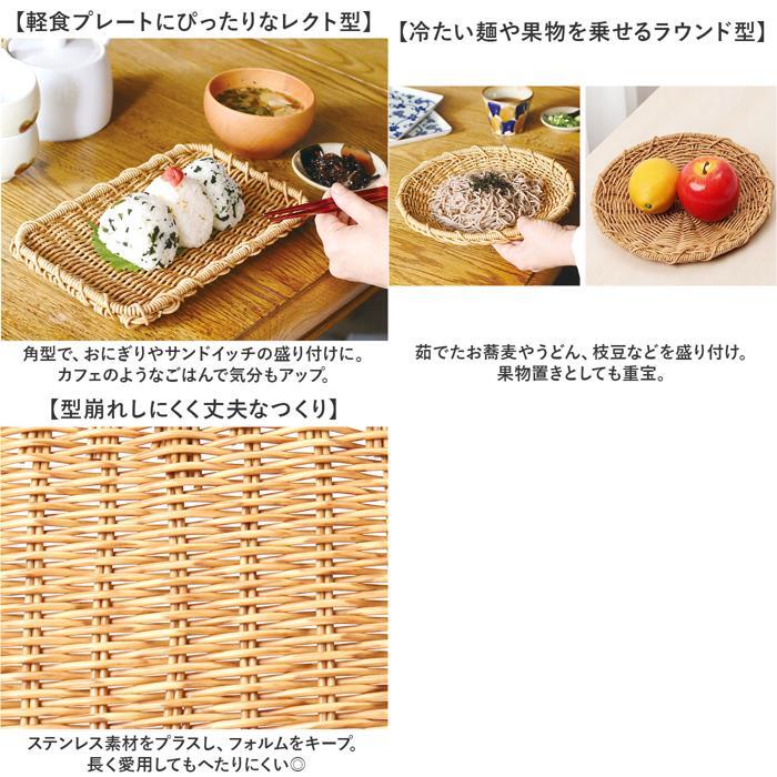 | 商品説明 | ・・【見た目にも機能性にもこだわりを】 ・おしゃれで実用的◎水切りや盛り付けに使える「UTILE ざる S」選べる2タイプ。 ・【天然素材のようなナチュラル感】 ・ポリプロピレンとポリエチレンを使って手編み。生活感が出にくく置いておくだけでサマになる! ・【水に強く、濡れても大丈夫】 ・天然素材のようにカビや虫、湿気を気にする心配なし。水洗いできてお手入れも簡単◎ ・(※)濡れた状態で放置しないでください。 ・【カップなどの水切りカゴとして活躍】 ・洗い終わったカップ類やカトラリーなど、小ぶりなアイテムを並べて水切り♪ ・【軽食プレートにぴったりなレクト型】 ・角型で、おにぎりやサンドイッチの盛り付けに。カフェのようなごはんで気分もアップ。 ・【冷たい麺や果物を乗せるラウンド型】 ・茹でたお蕎麦やうどん、枝豆などを盛り付け。果物置きとしても重宝。 ・【型崩れしにくく丈夫なつくり】 ・ステンレス素材をプラスし、フォルムをキープ。長く愛用してもへたりにくい◎ ・【どんな空間にも素敵にマッチ】 ・飽きが来ず、空間に馴染むデザイン♪お気に入りのアイテムで、お家時間をより豊かに。 |