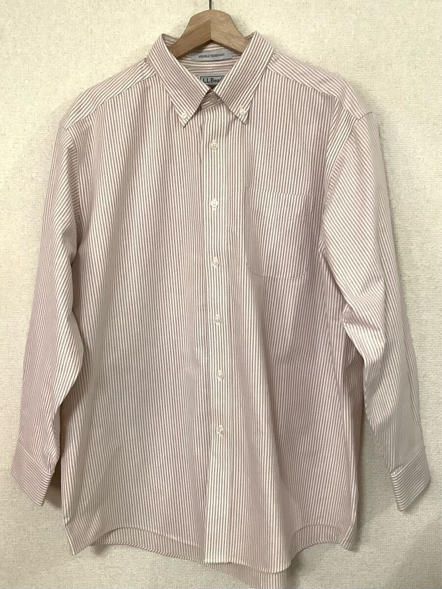 L.LBEAN エルエルビーン ストライプ柄 ボタンダウンシャツ ライトブラウン アウトドア セレクト カジュアル メンズ 古着