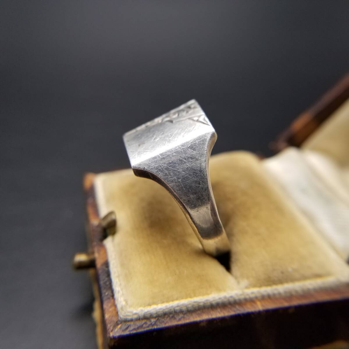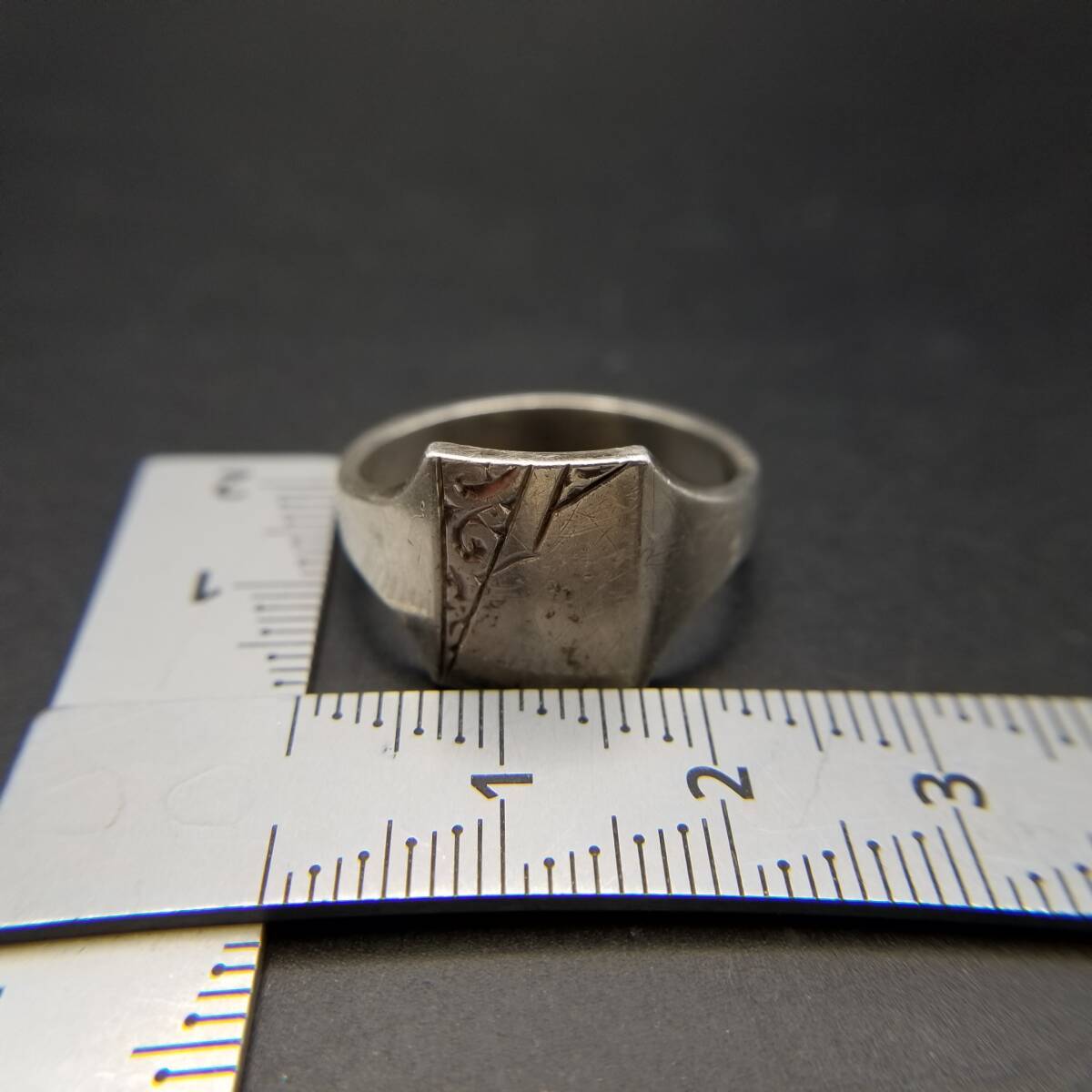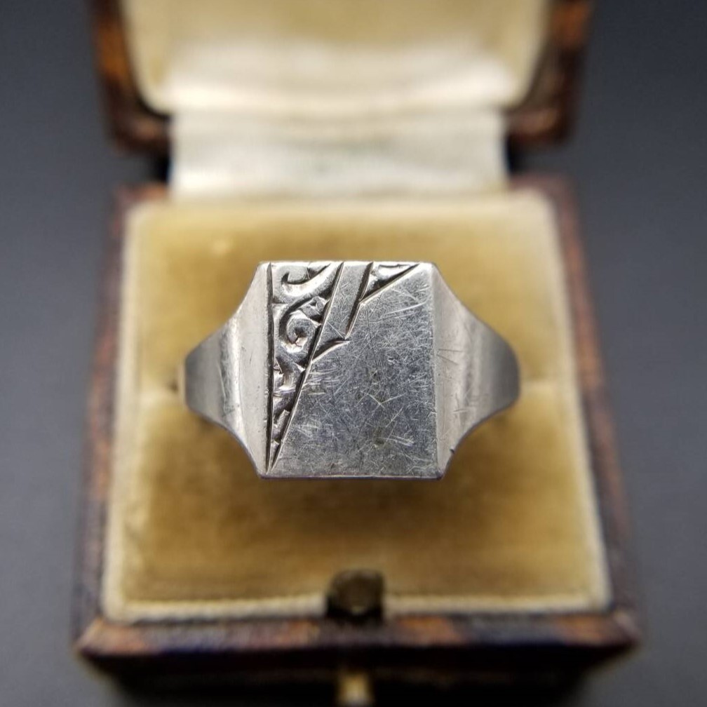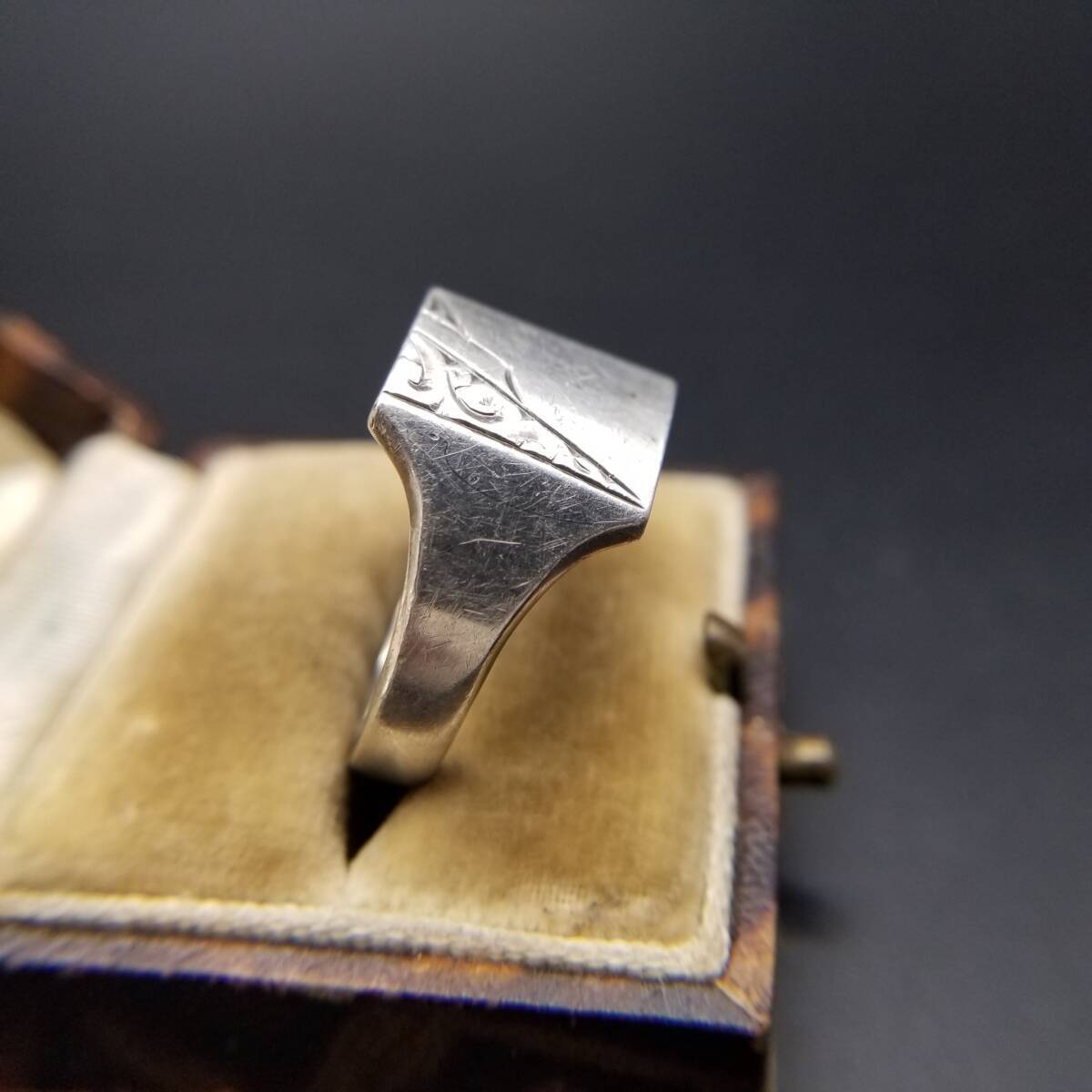 1986年 英国 ヴィンテージ 植物模様 フローラル シグネット リング 925 シルバー 銀 Birmingham ホールマーク 指輪 レクタングル Y22-L