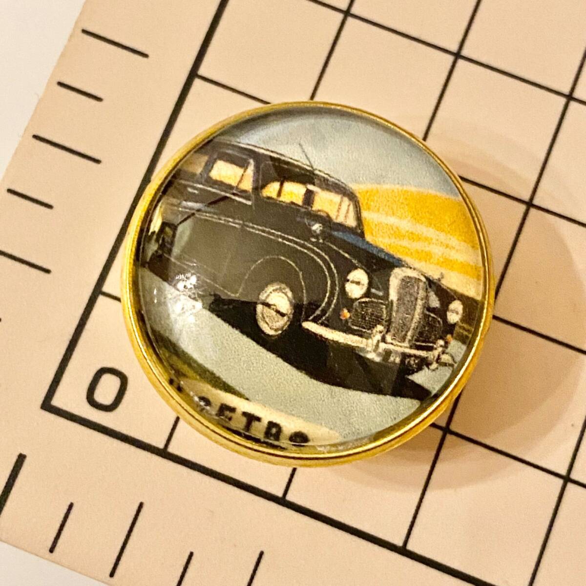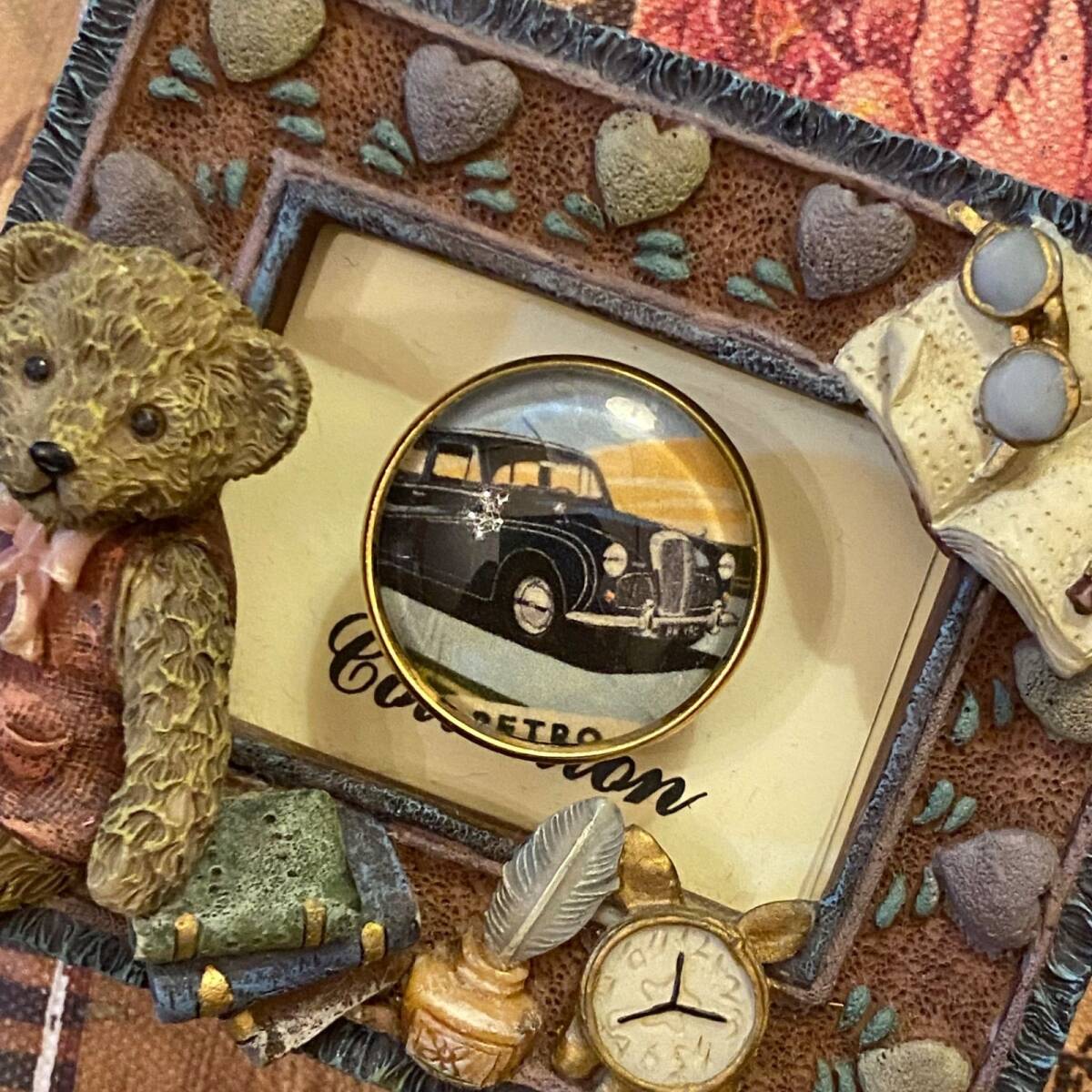 【着物リメイク ガラス帯留め 和洋折衷 和ロリータ ハンドメイド アクセサリー 真っ黒なクラシックカー。 GK-132】
