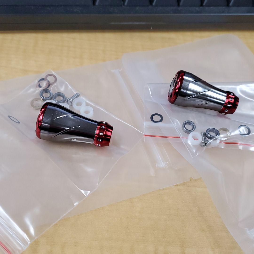 YU129R 合金製ノブ 銀赤色 パワーリールハンドルノブ シマノ ダイワ適用 ベイトリール対応 釣りリール ハンドル ボール 交換用 ねじ付き