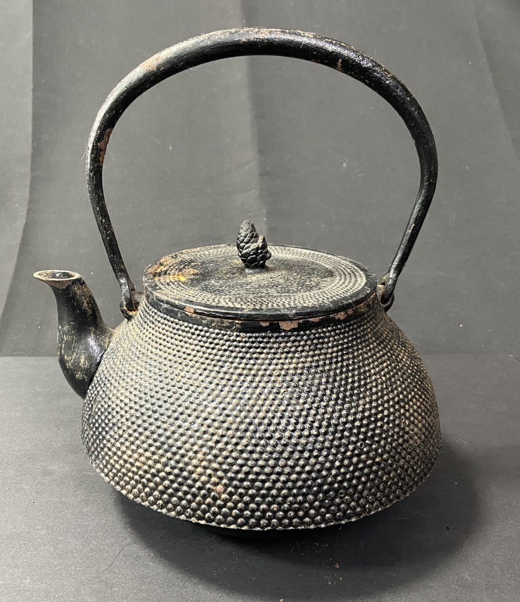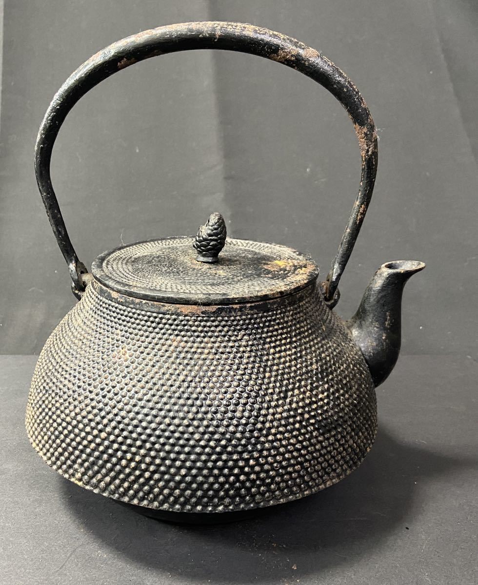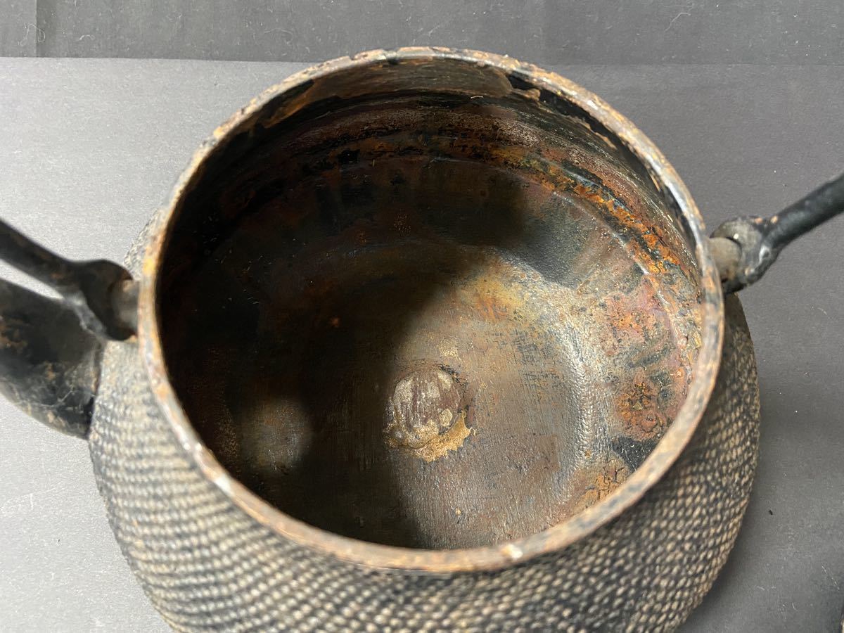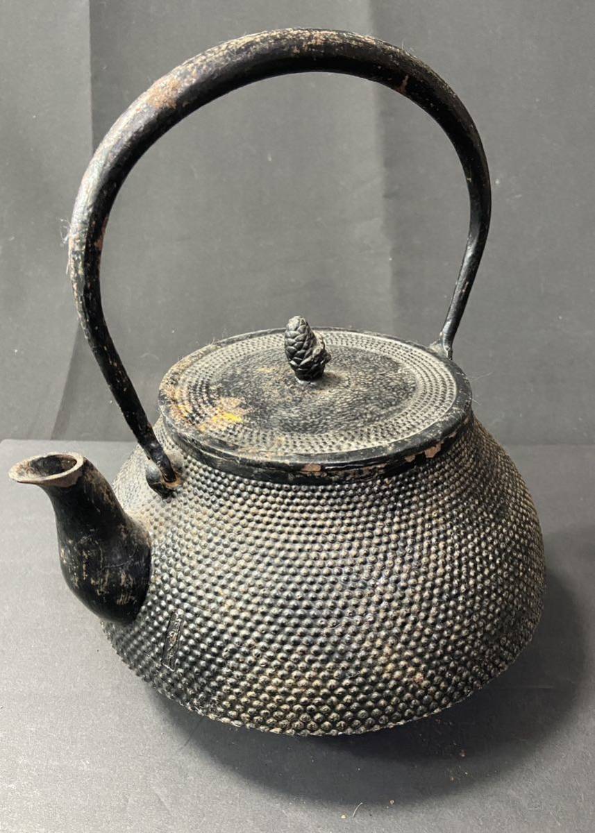 ◇【貴重】旬利久作 南部鉄瓶 在銘 刻印 あられ 湯沸 茶道具 / 236294 / 66-2