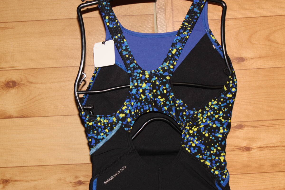 ◇日々プールでトレーニングを重ねる学生やアクティブスイマーをサポートする、練習用スイムウエアコレクション「TurnS(ターンズ)」。毎日のトレーニングを支える高い耐塩素性・優れた4WAYストレッチ性に加え、透けにくい厚みと柔らかな風合いを実現した環境配慮型素材「ENDURANCE ECO※」を採用したレディースニースキンです。その中でも学生からマスターズの練習用水着を着用する女性スイマーのために、バストトップの凹凸が出るのを回避するMade For Womanデザイン。マルチパネルデザインのバスト部分には錯視効果のあるマルチドット柄を採用し、凹凸をカモフラージュ。プリント部分とVラインのみに裏地をほどこし、前身頃全面裏地に比べ重さを軽減。露出の少ないレッグ丈(4分丈)。別売りのカップを使用できるフック受けが付いています。※カップは付属しておりません。マルチドット柄は深海から水面を見上げた際の太陽光のきらめきをイメージしています。※「ENDURANCE ECO」・・・ペットボトルを再利用したリサイクルポリエステルと植物性由来原料のSOLOTEXを使用した環境配慮型素材。