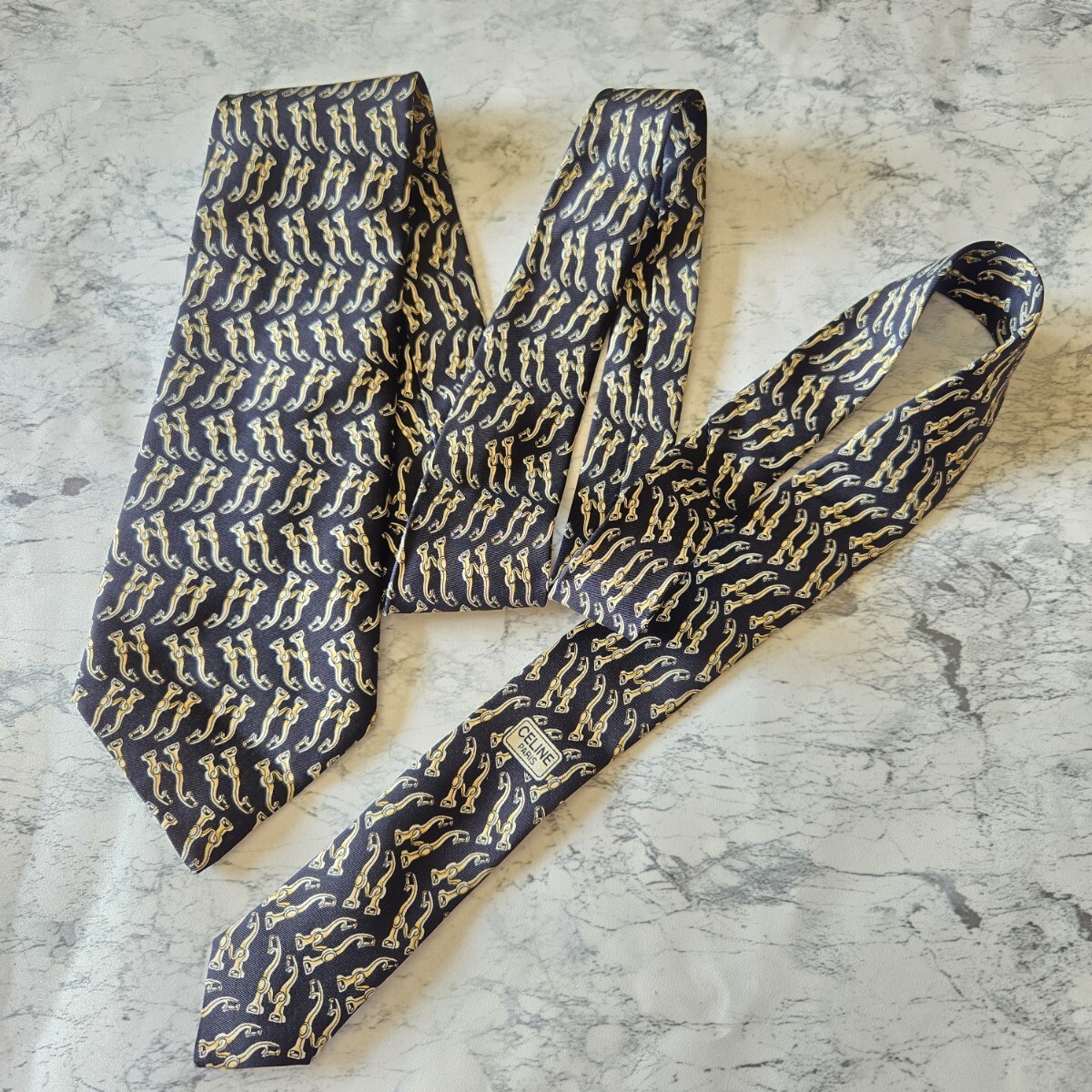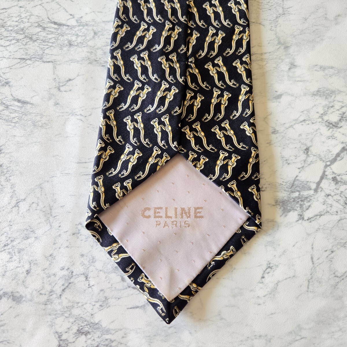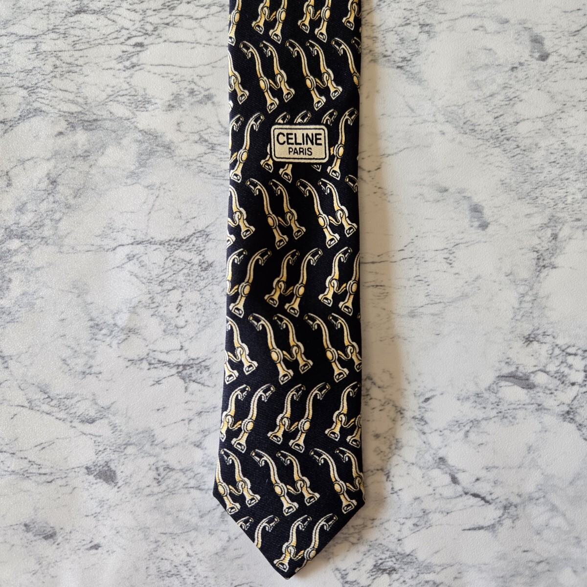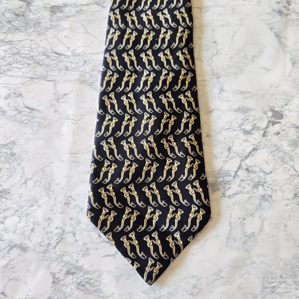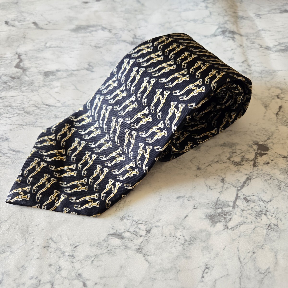 ゴールド使いが華やかさを演出しつつ、ギラつかず落ち着いた大人の雰囲気のネクタイです。