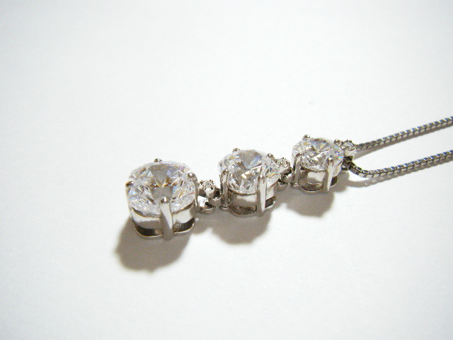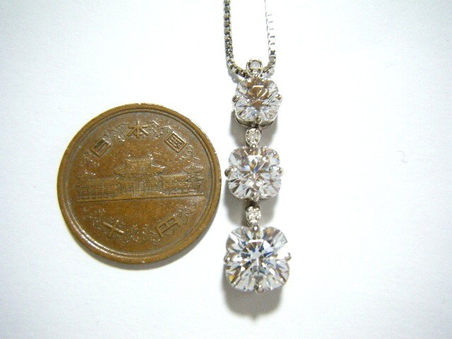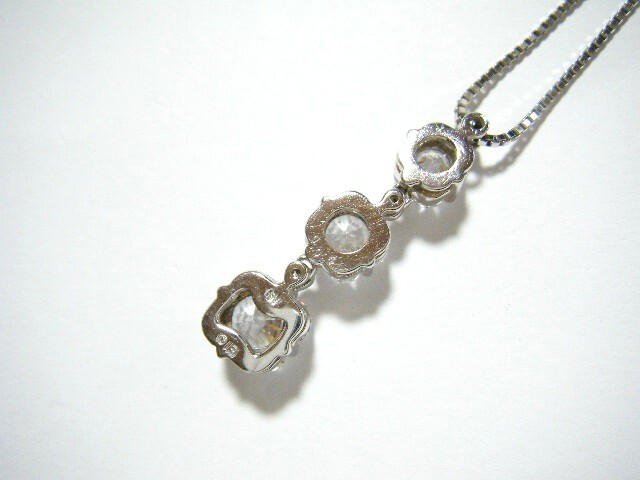 ★SILVER 925 IEI ダイヤ? 0.04カラット キュービックジルコニア 3粒 6.6mm 7.5mm 8.8mm ペンダント ネックレス【OS14】