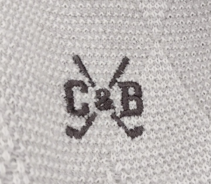 同系色のアーガイル柄に、3種類の刺繍ロゴが両面に入ったお洒落な一枚。