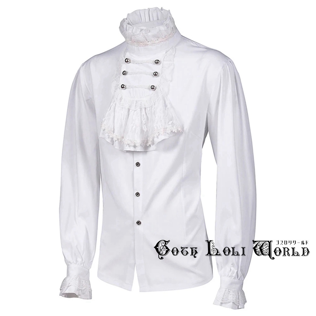 即納 Y-522W-CE-XL アスコットフリルタイ付 ブラウス メンズ ファッション ゴシック スチームパンク ビジュアル系 ヴィジュアル系