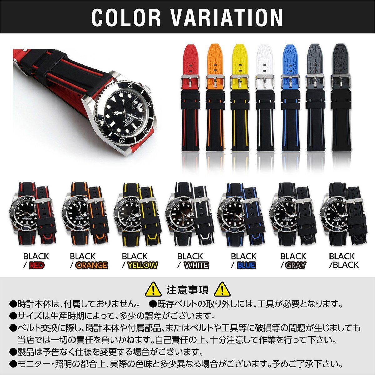 ※こちらは、ブラック/グレー 20mmのページになります。 [商品名] 腕時計ラバーベルト メンズ レディース バネ棒内蔵 [商品詳細] 柔らかくしなやか、手首になじみやすくソフトな装着感が特徴のシリコンベルトです。 耐水性に優れている為、スポーツ・アウトドアにお薦めです。 [素材] ベルト:シリコン 尾錠:ステンレス(バネ棒含む) [サイズ] 20mm [カラー] ブラック/グレー [厚さ] 約3.8~4.0mm [重量] 約22~25g [内容品] ベルト × 1本 [コンディション] 新品未使用品です。 [注意事項] ・時計本体は、付属しておりません。 ・既存ベルトの取り外しには、工具が必要となります。 ・サイズは生産時期によって、多少の誤差がございます。 ・ベルト交換に際し、時計本体や付属部品、またはベルトや工具等に破損等の問題 が生じましても当店では一切の責任を負いかねます。 自己責任の上、十分注意して作業を行って下さい。 ・製品は予告なく仕様を変更する場合がございます。 ・モニター・照明の都合上、実際の色味と多少異なる場合がございます。 予めご了承下さい。 |