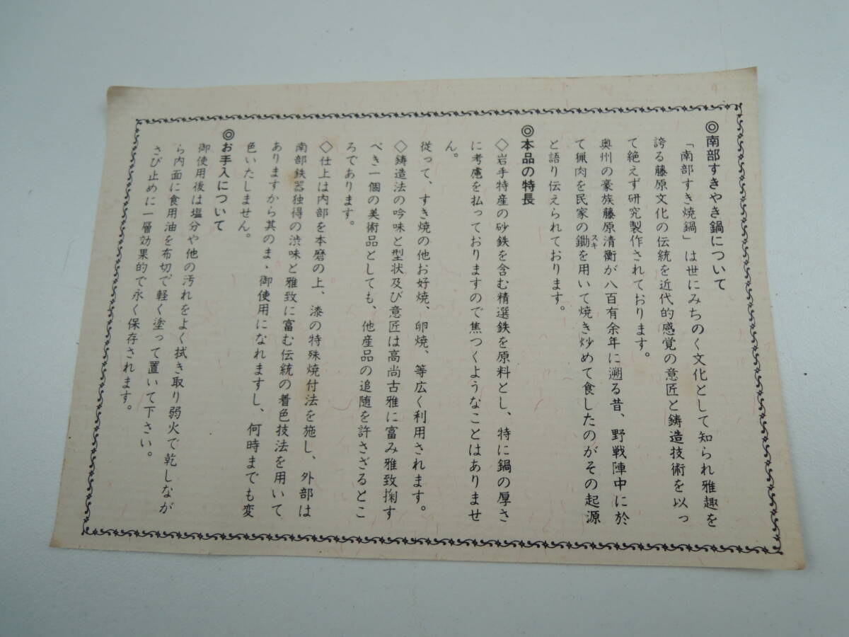 未使用 南部鉄器 盛栄堂 すき焼き鍋 20cm 鉄鍋 長期保管品