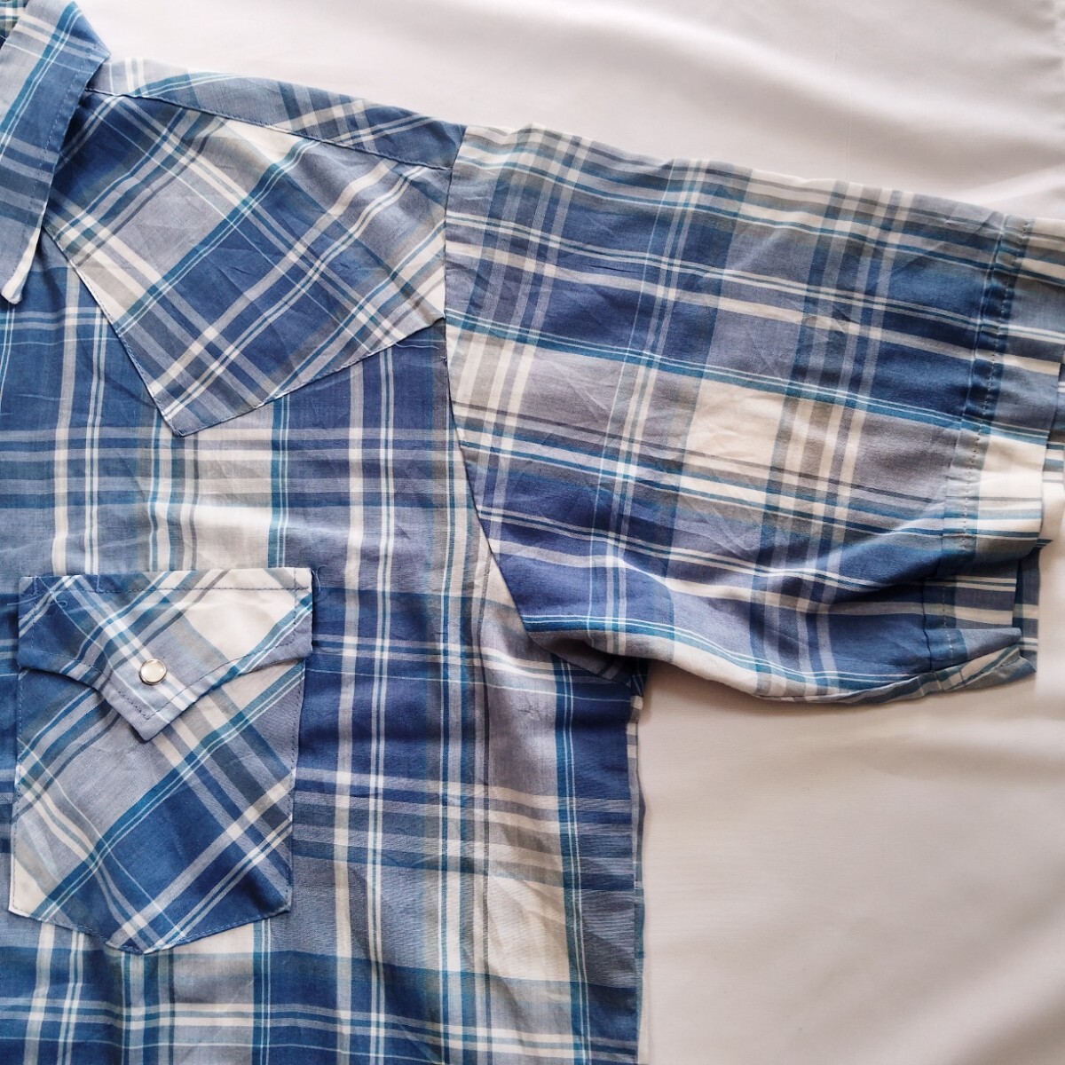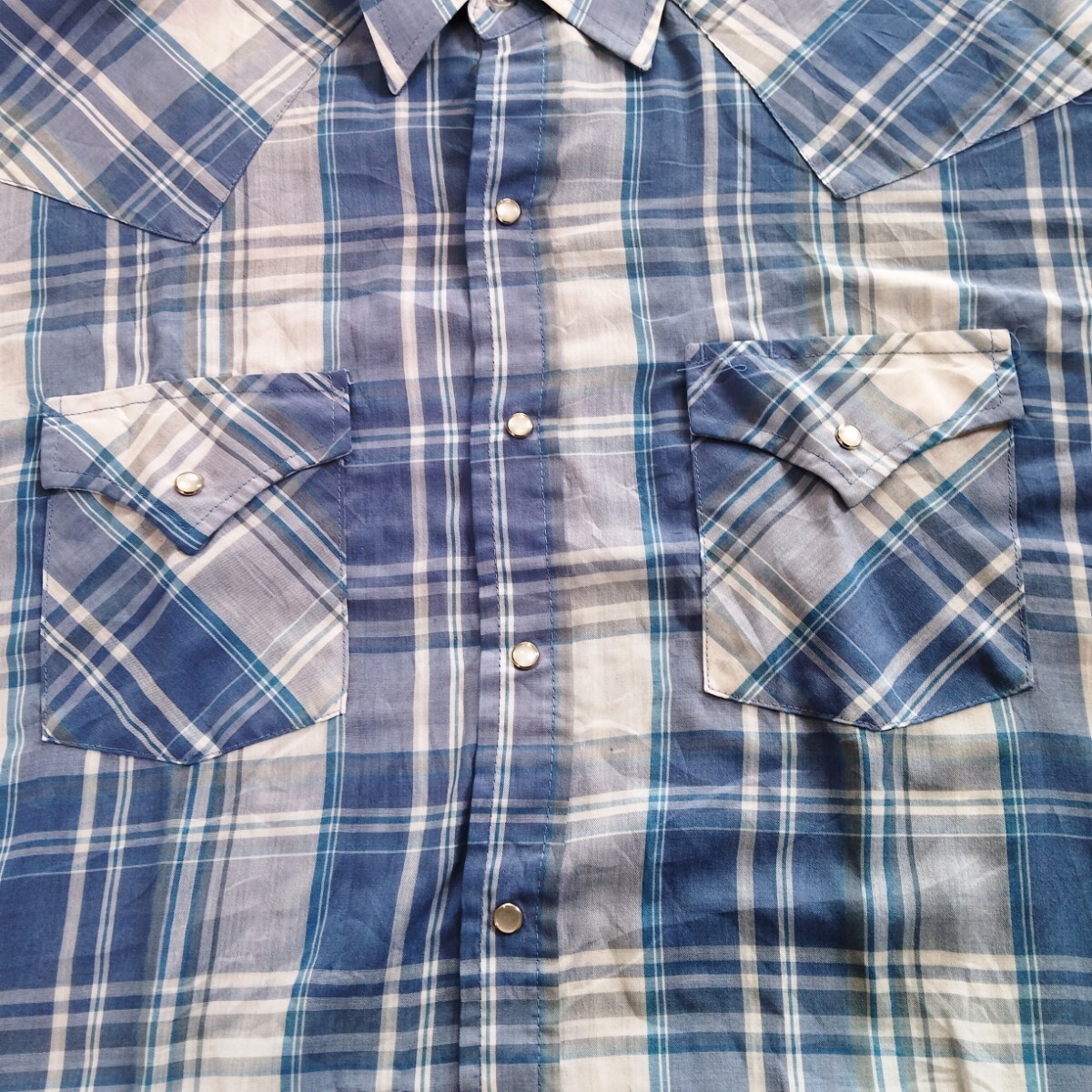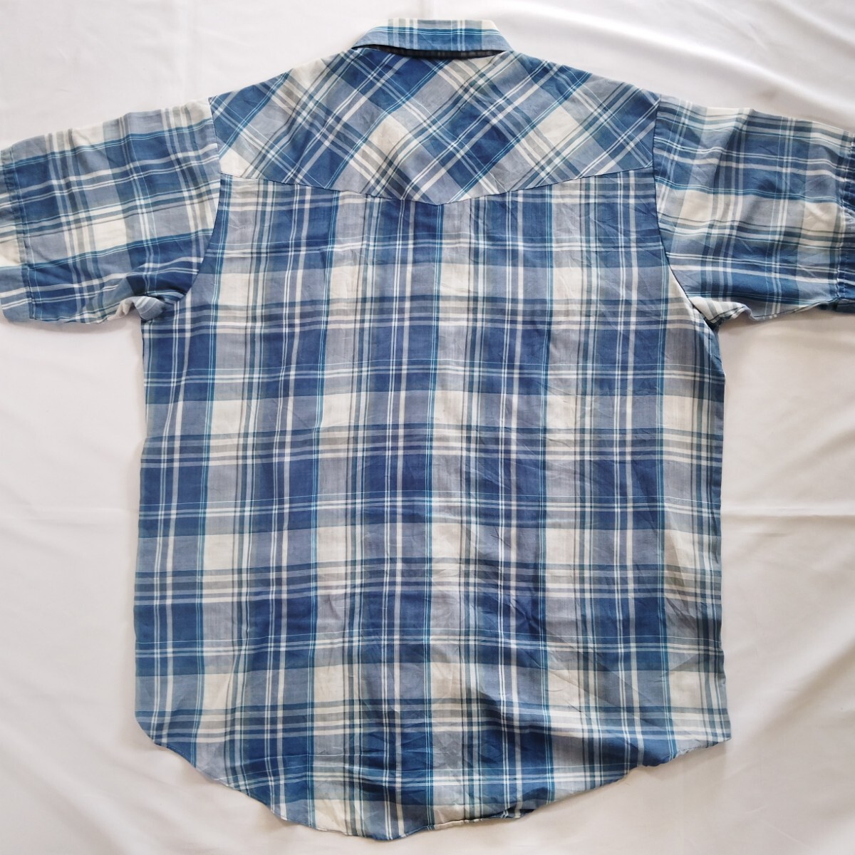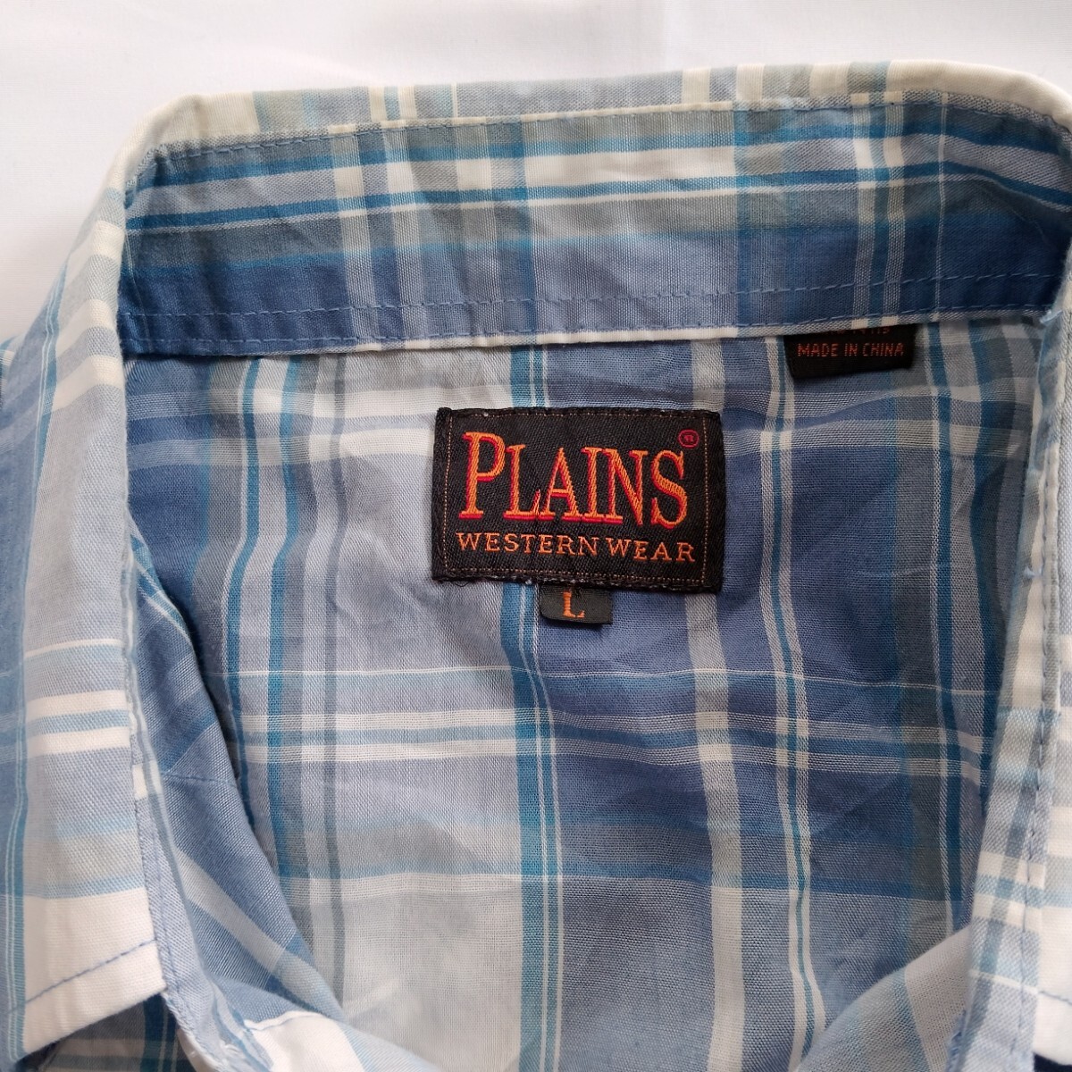 PLAINS プレインズ 半袖ウエスタンシャツ メンズL ブルー系チェック柄