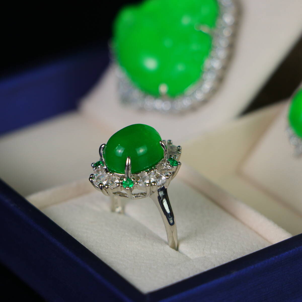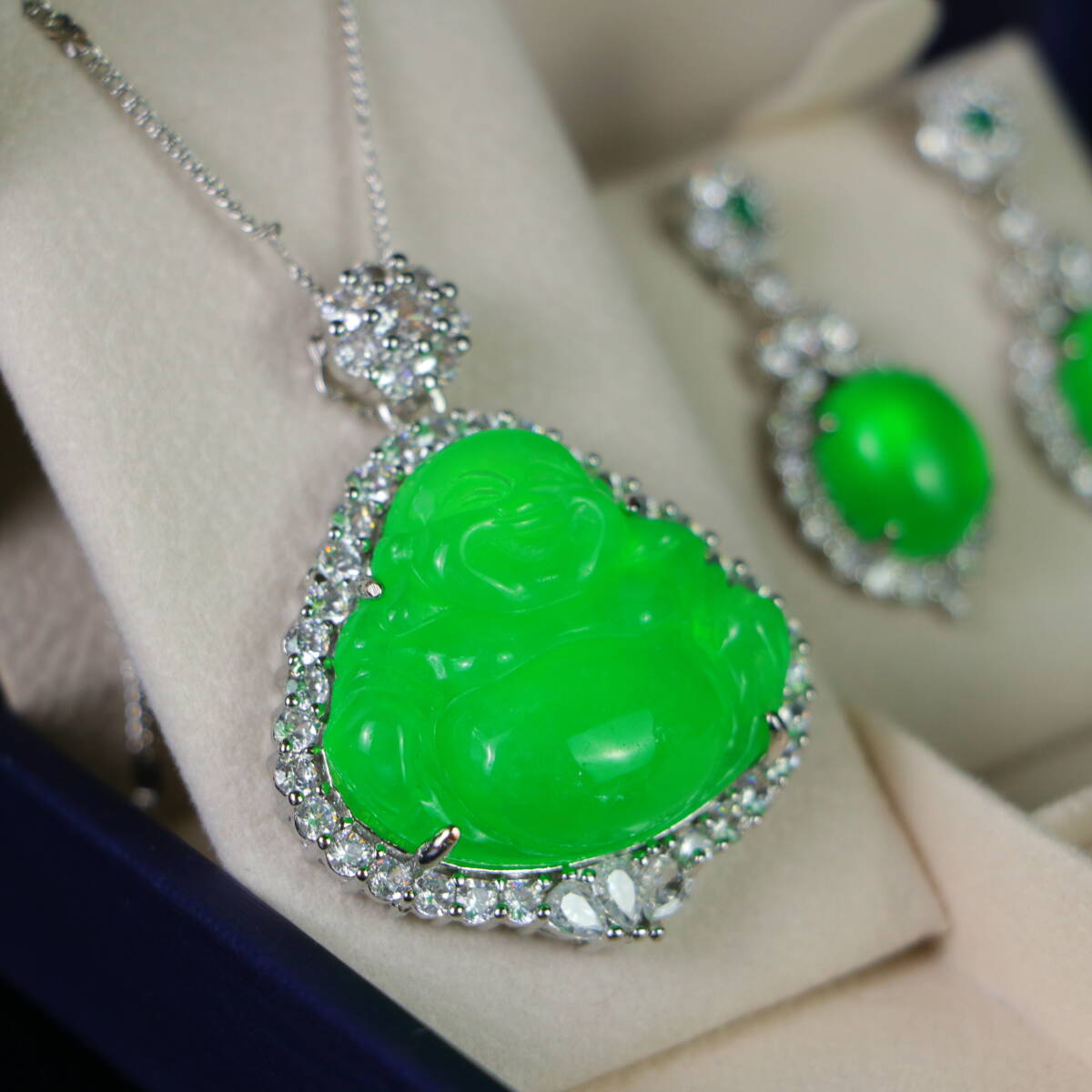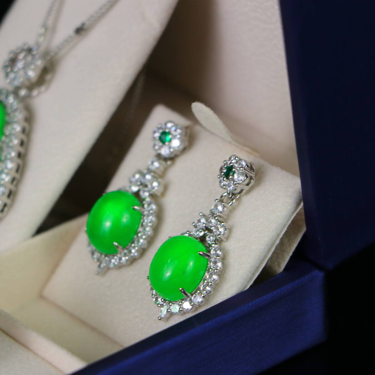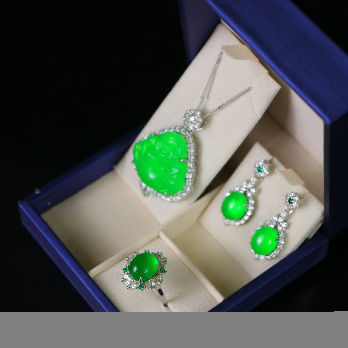 清 宮廷御製 古高冰寶石嵌 寶石 項鏈 戒指 耳釘 三件套 箱付 極細工 東洋彫刻 中国唐物 骨董品 古賞物 中国古玩 中国古美術