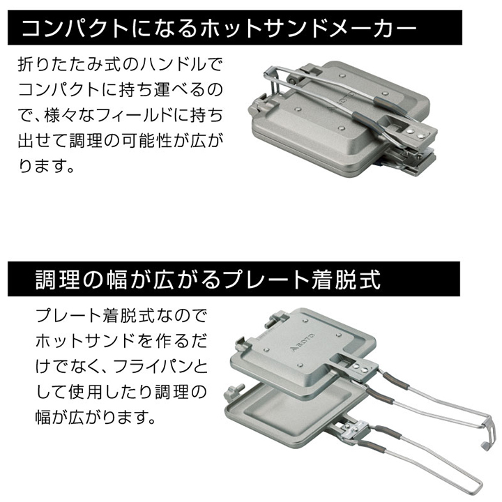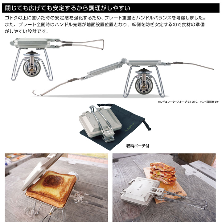 ソト【SOTO】ミニマル・ホットサンドメーカー 【ST-952】折り畳みコンパクト【日本製】アルミダイキャスト熱伝導*安定バランス収納ポーチ