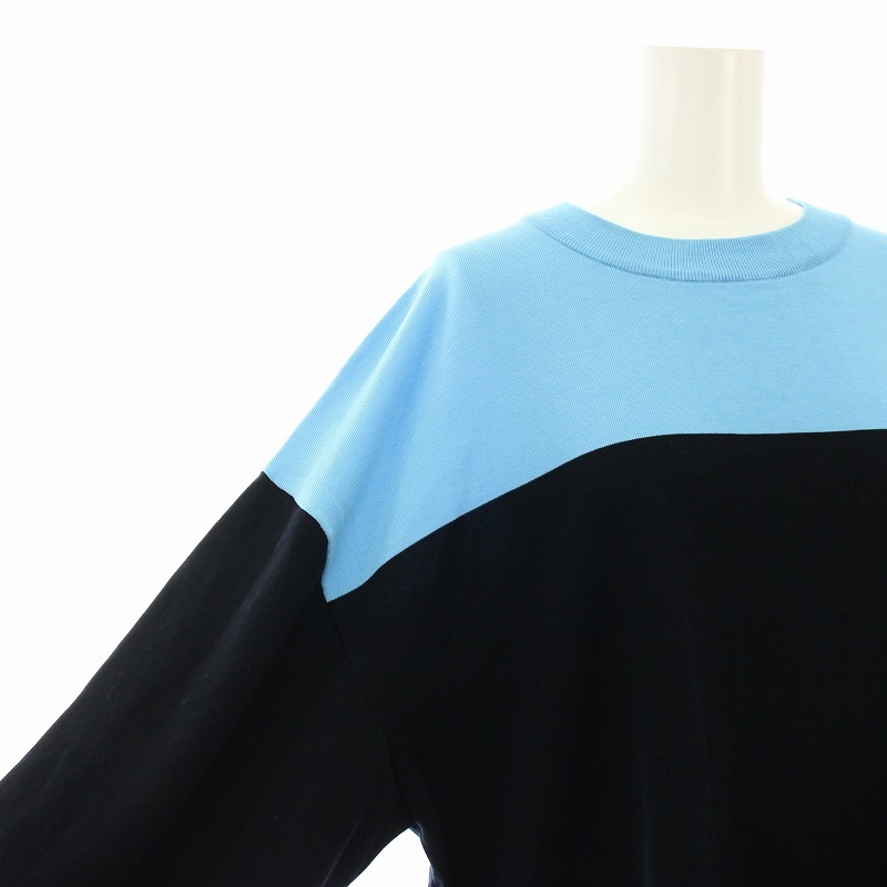 ナゴンスタンス nagonstans 25SS バイカラープルオーバー ニット セーター クルーネック 長袖 M 黒 水色 470IS870-0561 レディース