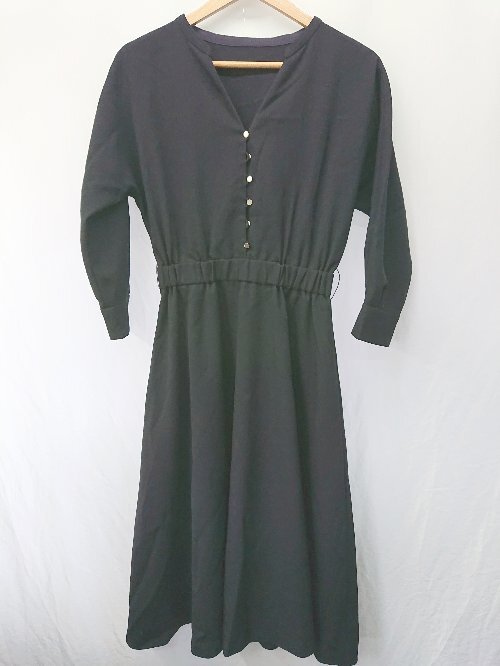 ◇ ◎ ⊇ Jewel Changes ジュエルチェンジズ 長袖 膝下丈 ワンピース サイズ36 ネイビー レディース E