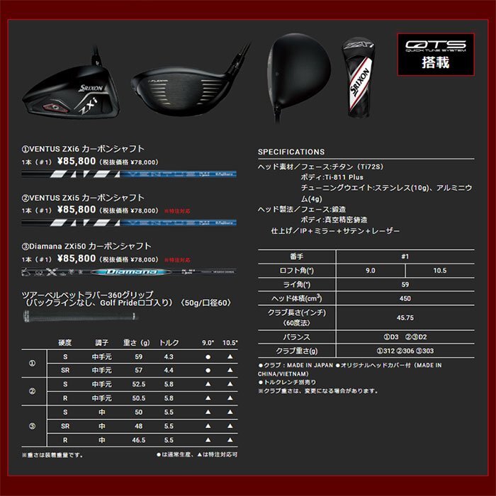 スリクソン ZXi TR ドライバー Diamana ZXi50 カーボンシャフト 日本仕様 ロフト:9° フレックス:S |