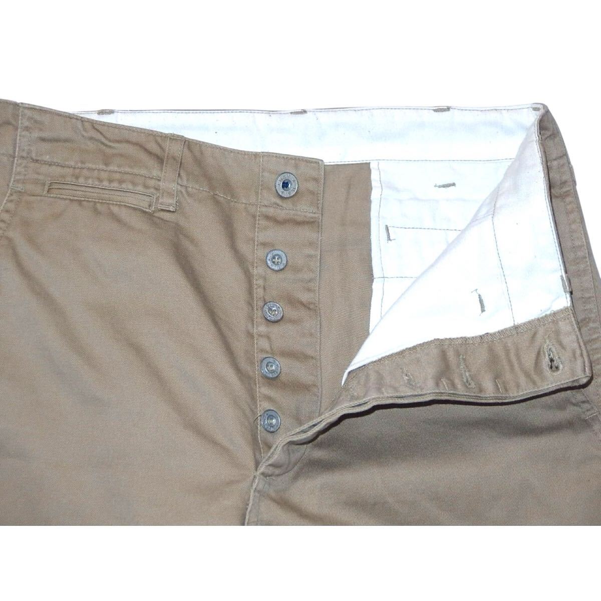メタルボタン ダブルステッチなどの40年代頃のビンテージチノのディテールを再現、生地も雰囲気があり当時の雰囲気を楽しめる一本です♪