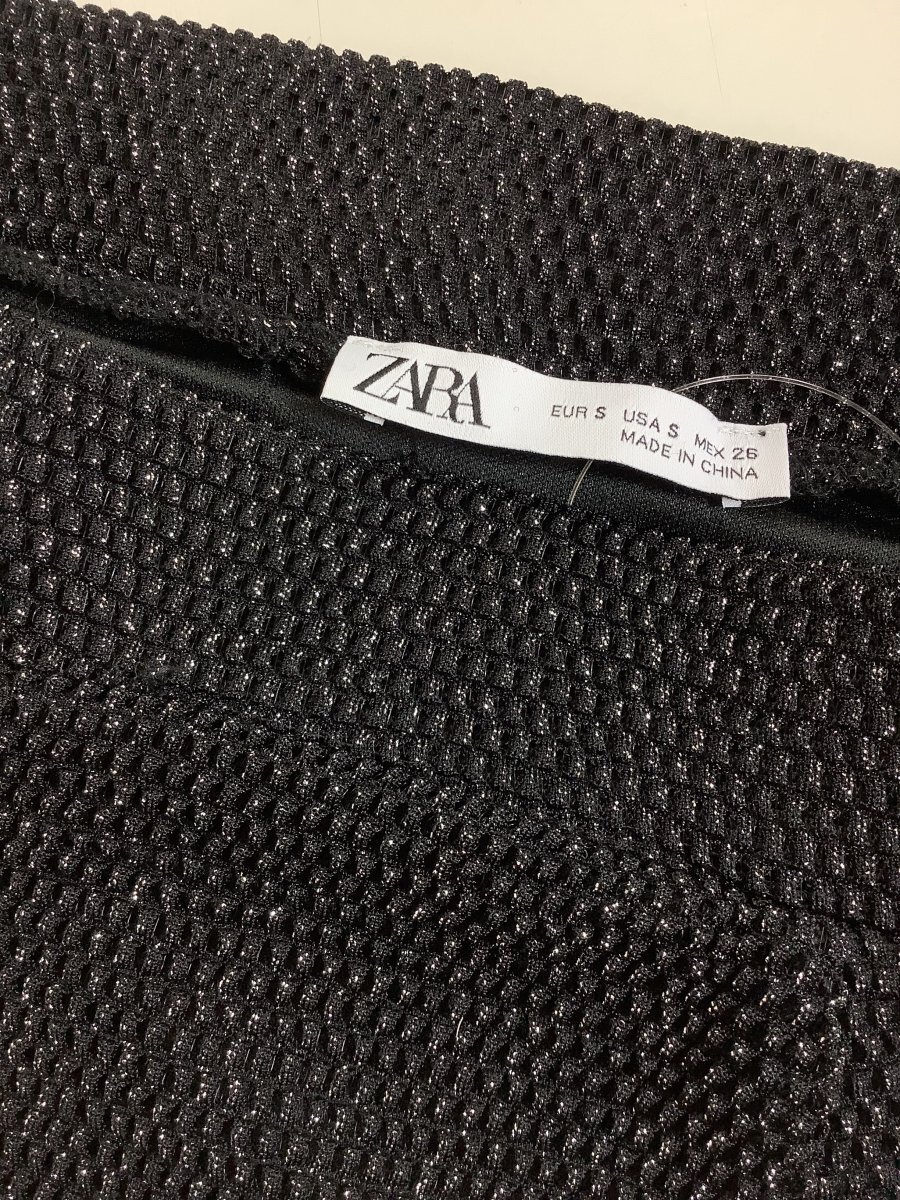 | 管理番号:10^137297 ザラ 黒にシルバーラメ ネット生地スカート ウエストゴム 表示サイズ:S 実寸(参考)
