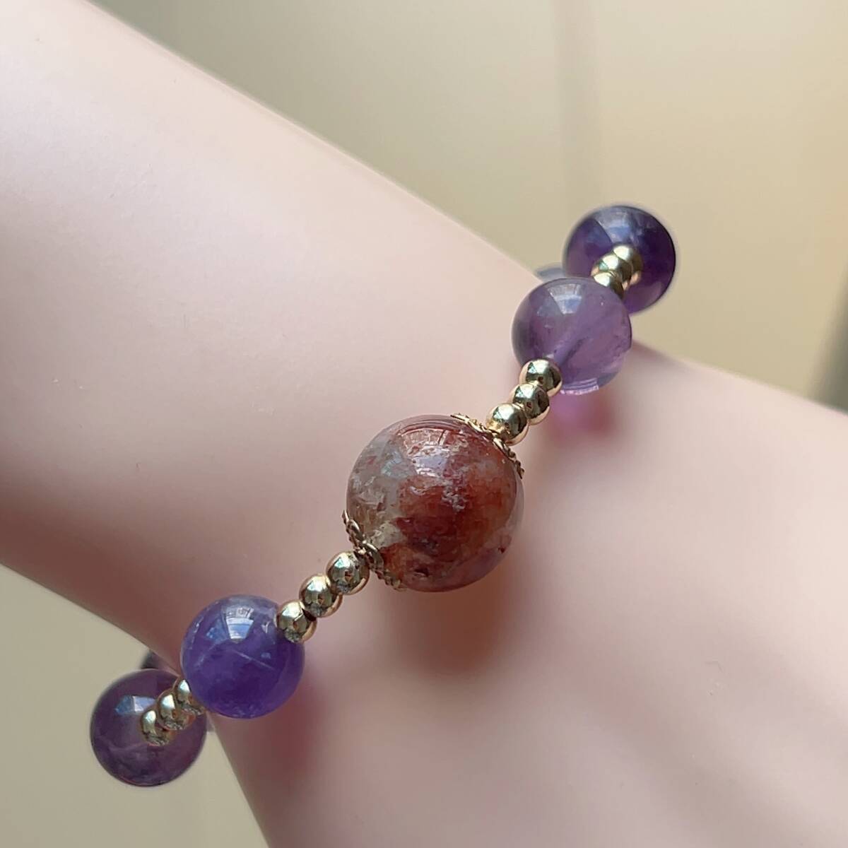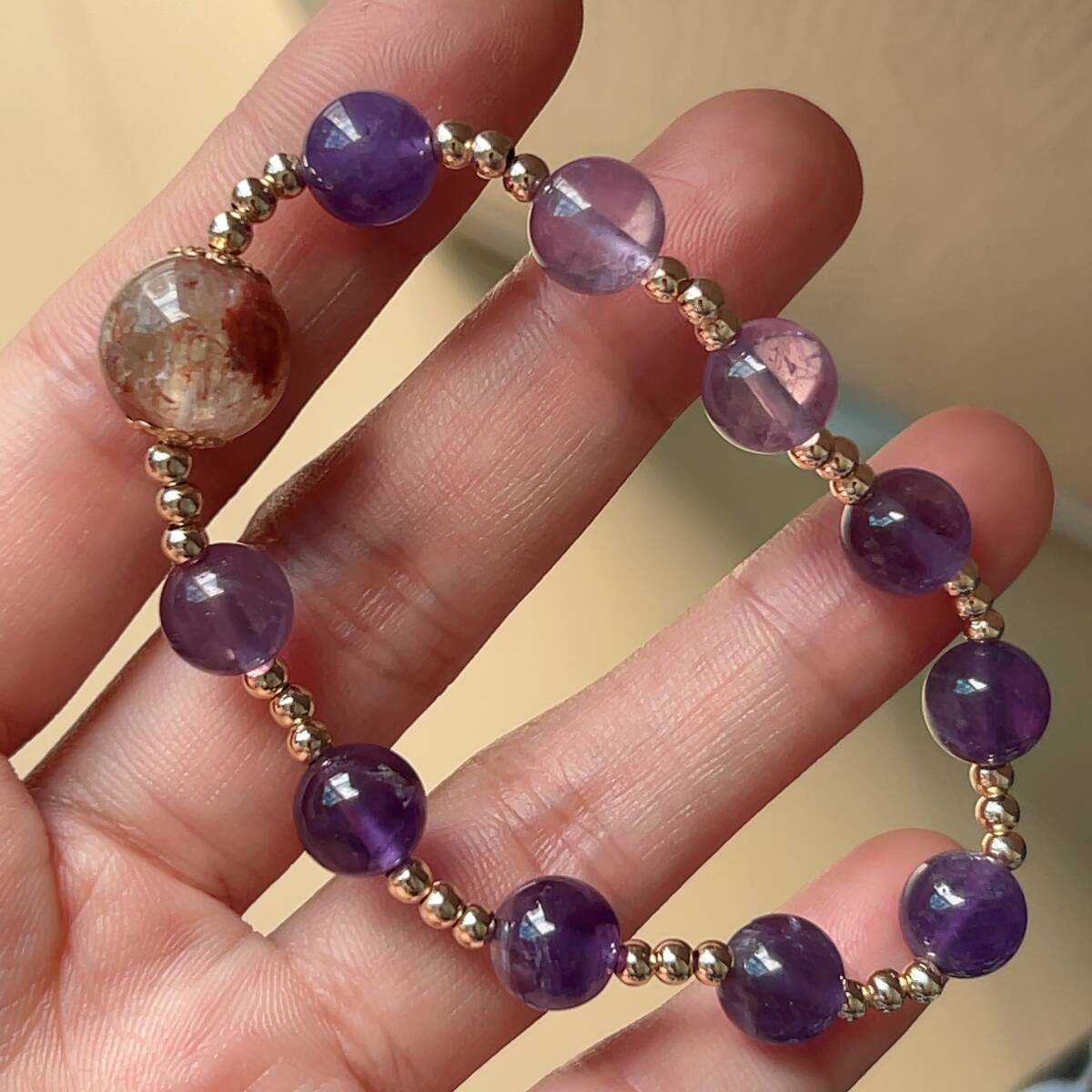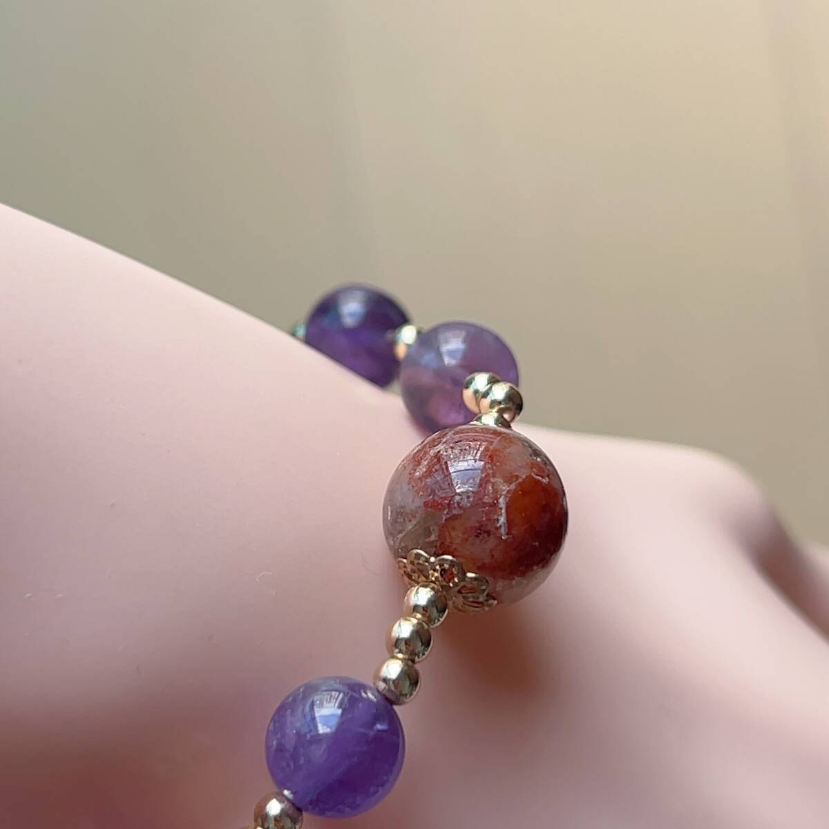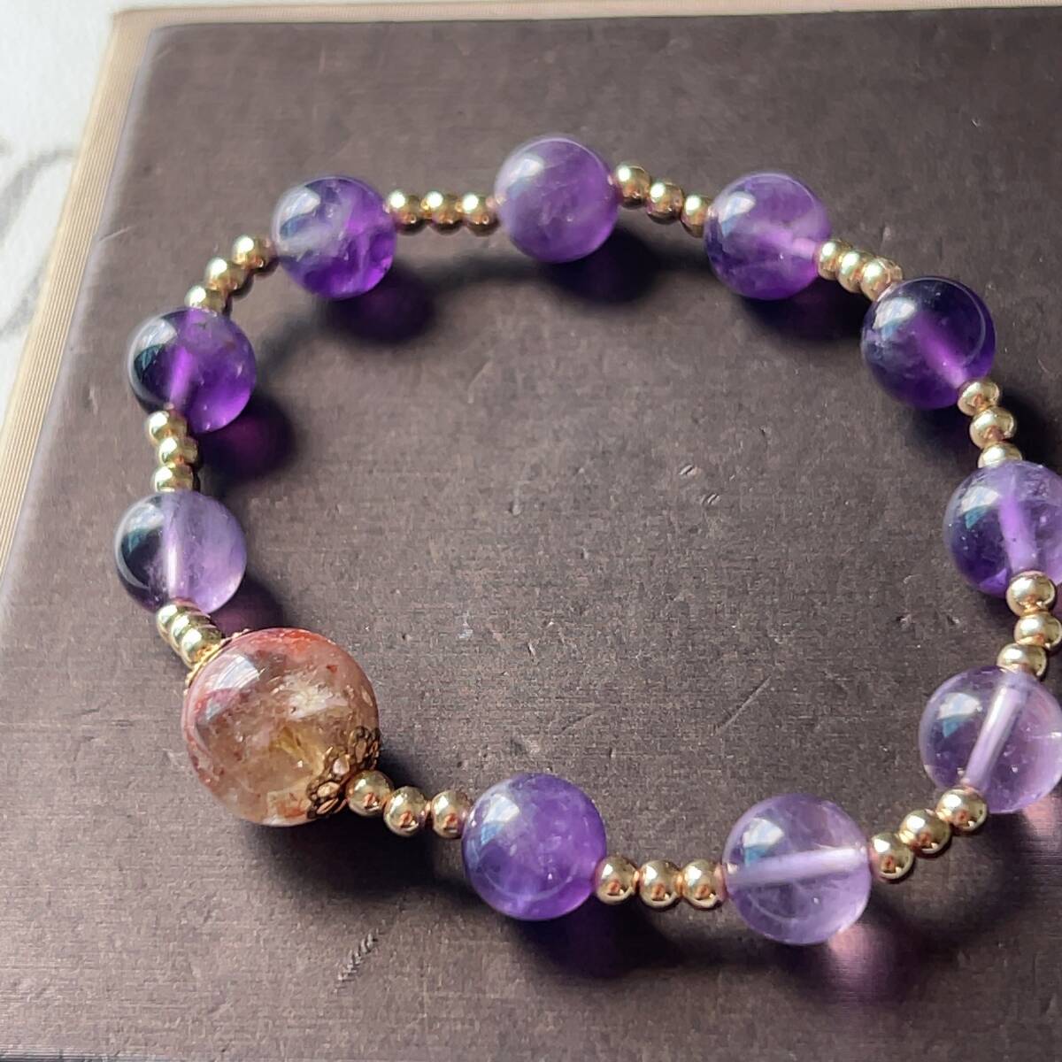 訳あり◇紫水晶◇アメジスト+ガーデンクォーツ◇ブレスレット◇パワーストーン◇天然石◇巾着袋付き◇プレゼントにも 037B5223