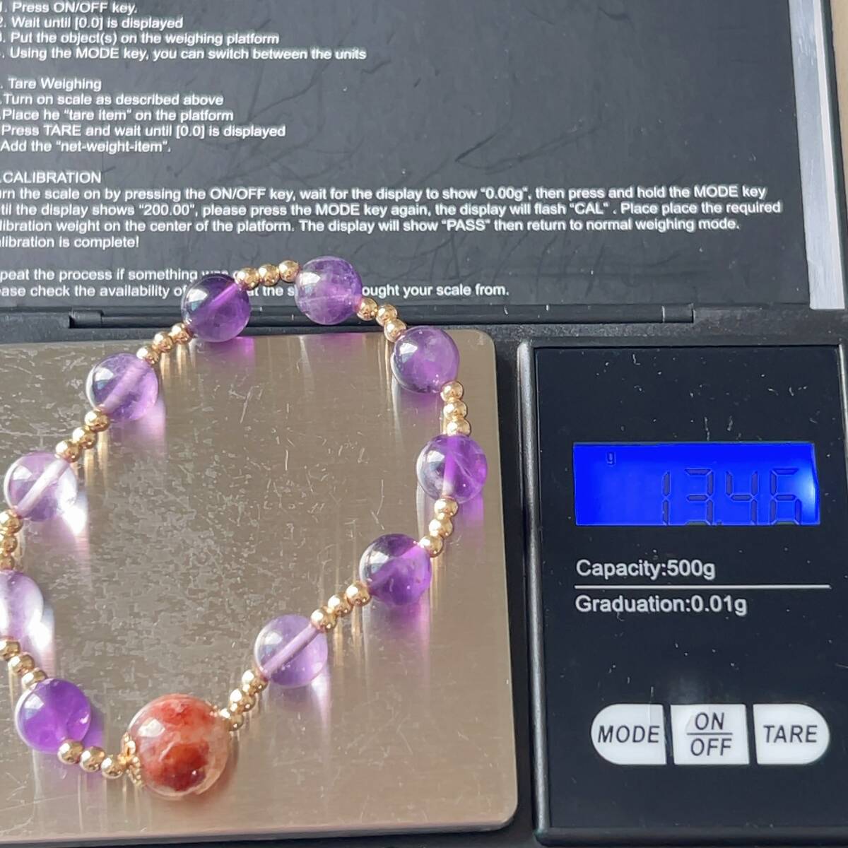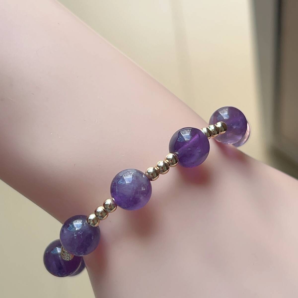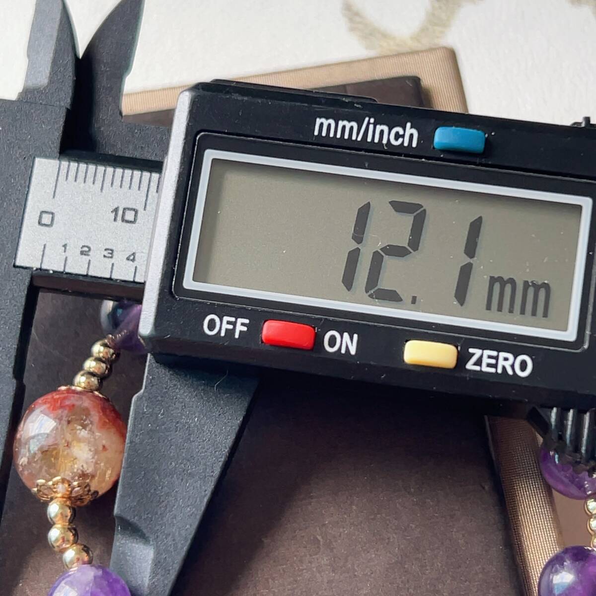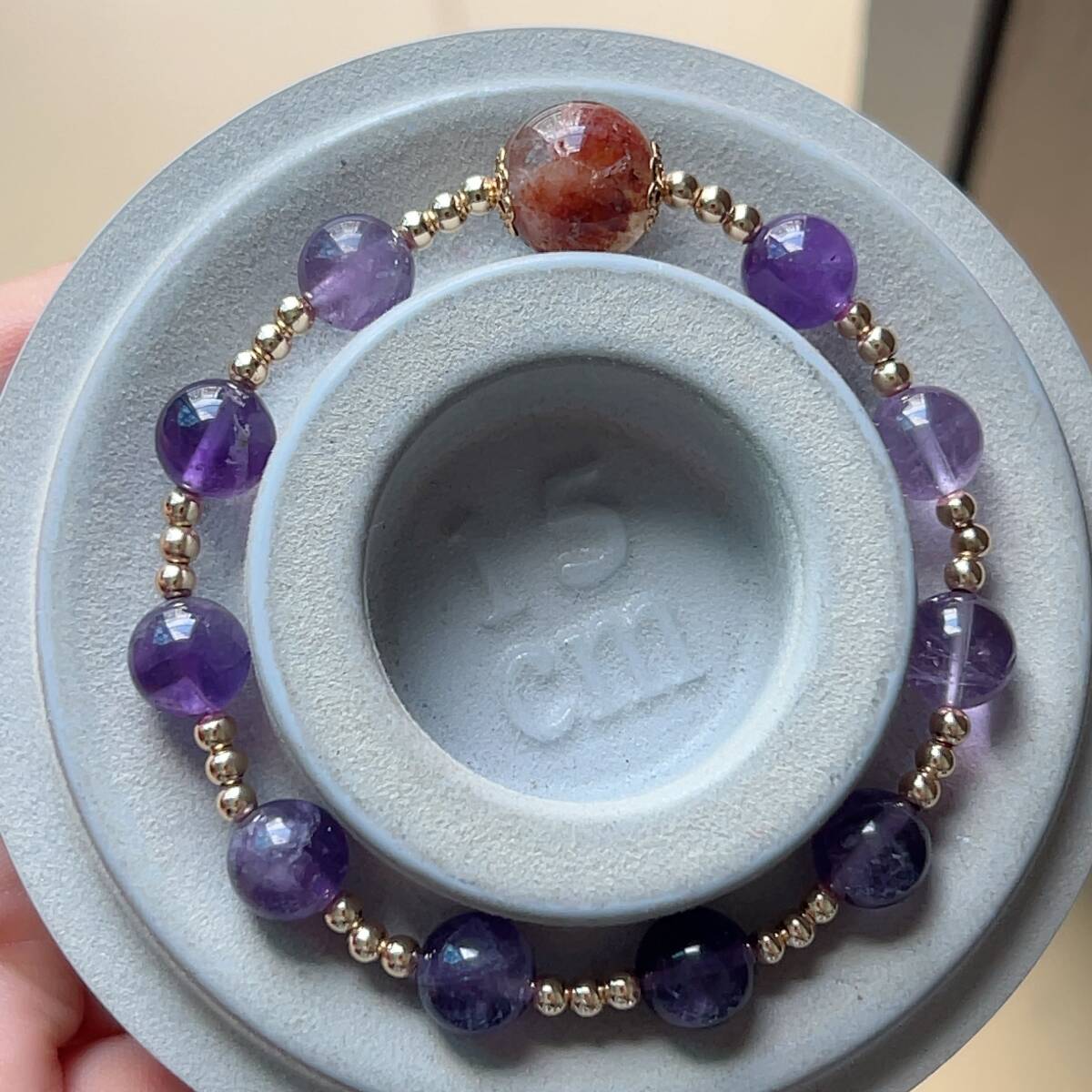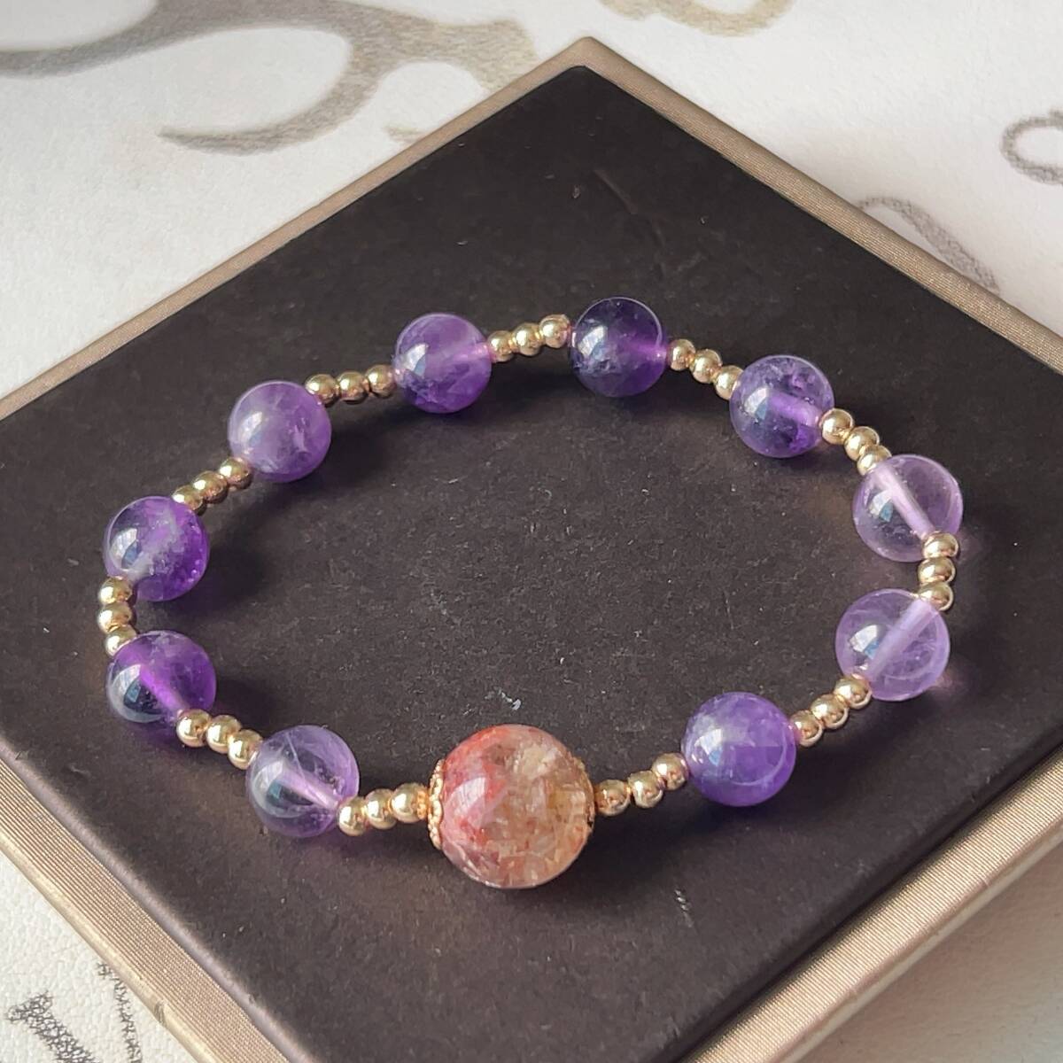 訳あり◇紫水晶◇アメジスト+ガーデンクォーツ◇ブレスレット◇パワーストーン◇天然石◇巾着袋付き◇プレゼントにも 037B5223
